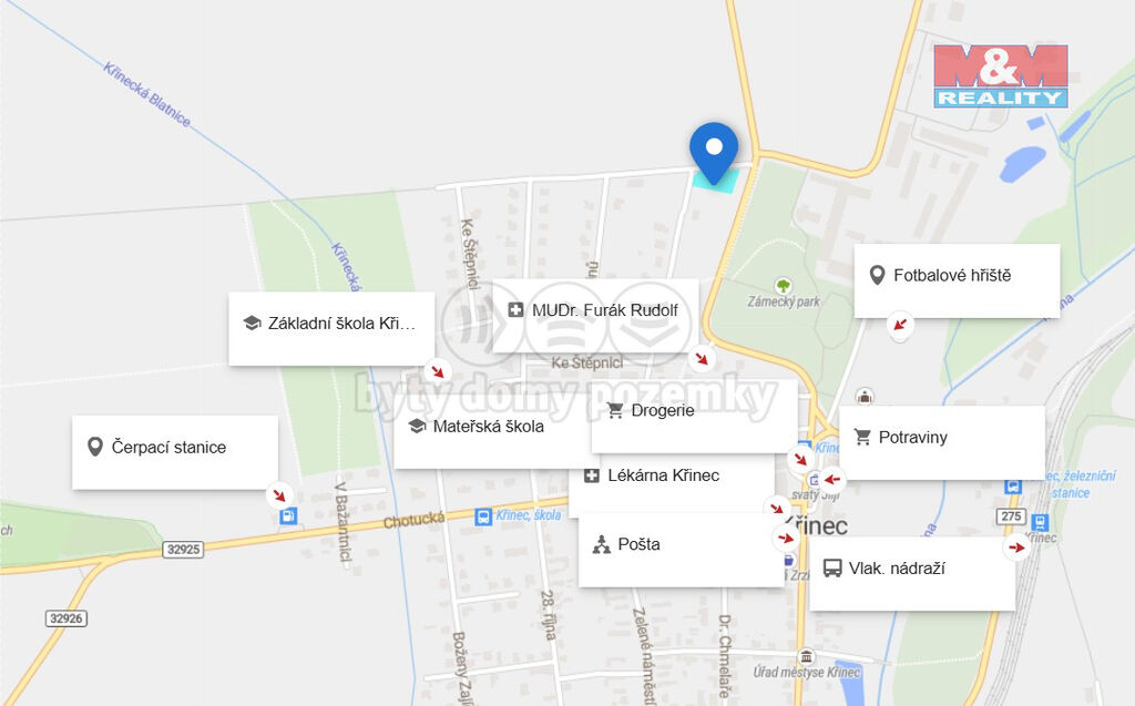 Hledáte ideální místo pro stavbu rodinného domu? Nabízíme k prodeji atraktivní stavební pozemek o výměře 1489 m² v oblíbené a klidné lokalitě městyse Křinec. Pozemek se nachází v zástavbě nově postavených rodinných domů a je jediný na prodej v této lokalitě, navíc rohový, což zajišťuje více soukromí a prostoru. Je kompletně zasíťovaný – napojení na vodovod, kanalizaci i elektřinu a je tak připravený k výstavbě rodinného domu.