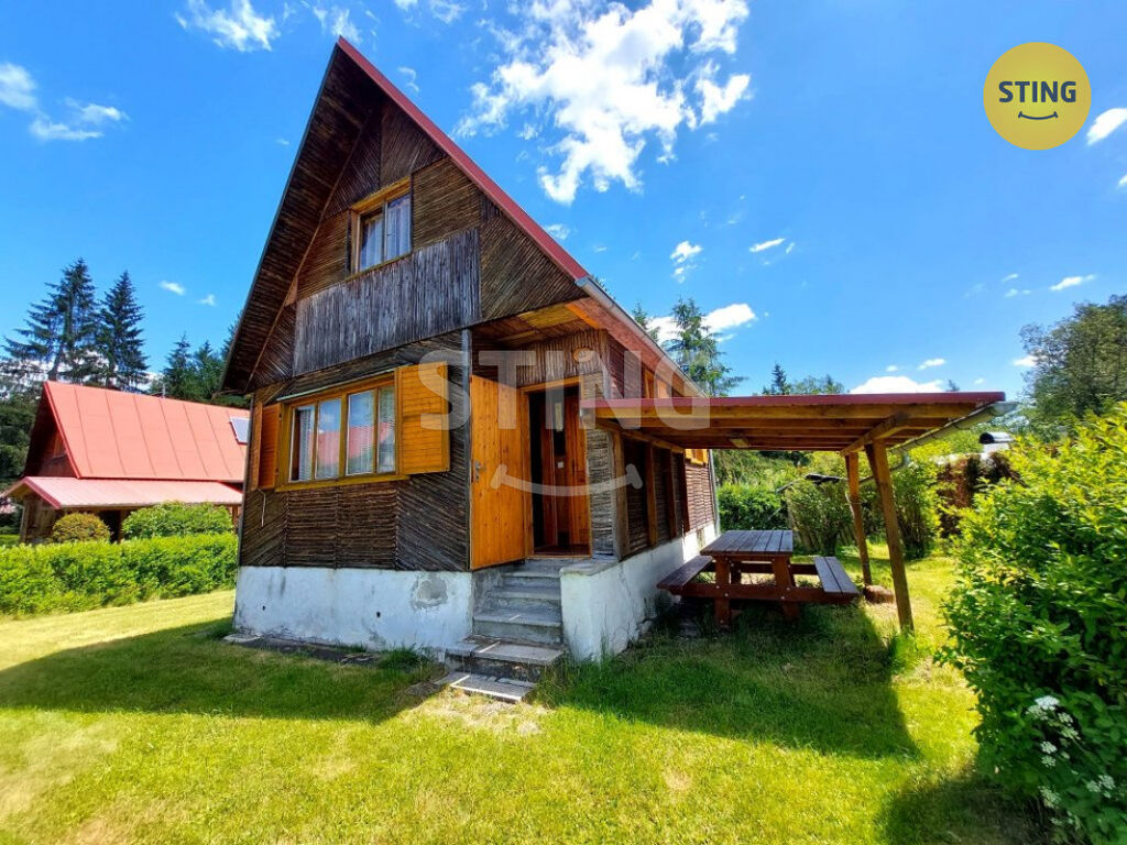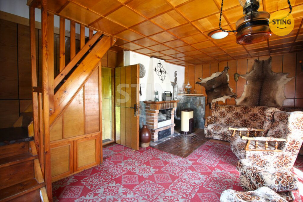 Chata disponuje obytným přízemím s kuchyňkou, špajzem, obývacím pokojem s krbem a toaletou. V podkroví jsou dvě místnosti vhodné pro spaní celé rodiny. Pod chatou je praktická garáž. U chaty je postavena pergola a venkovní krb – ideální místo pro letní posezení a grilování. Na hranici pozemku je k dispozici přípojka elektřiny, aktuálně je na střeše instalována sada solárních panelů (v současnosti odpojené, funkčnost je třeba ověřit), voda je brána z nedaleké studny využívané osadníky.