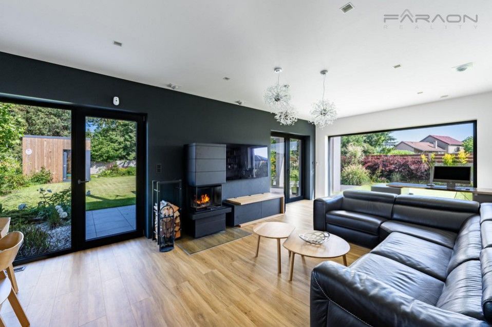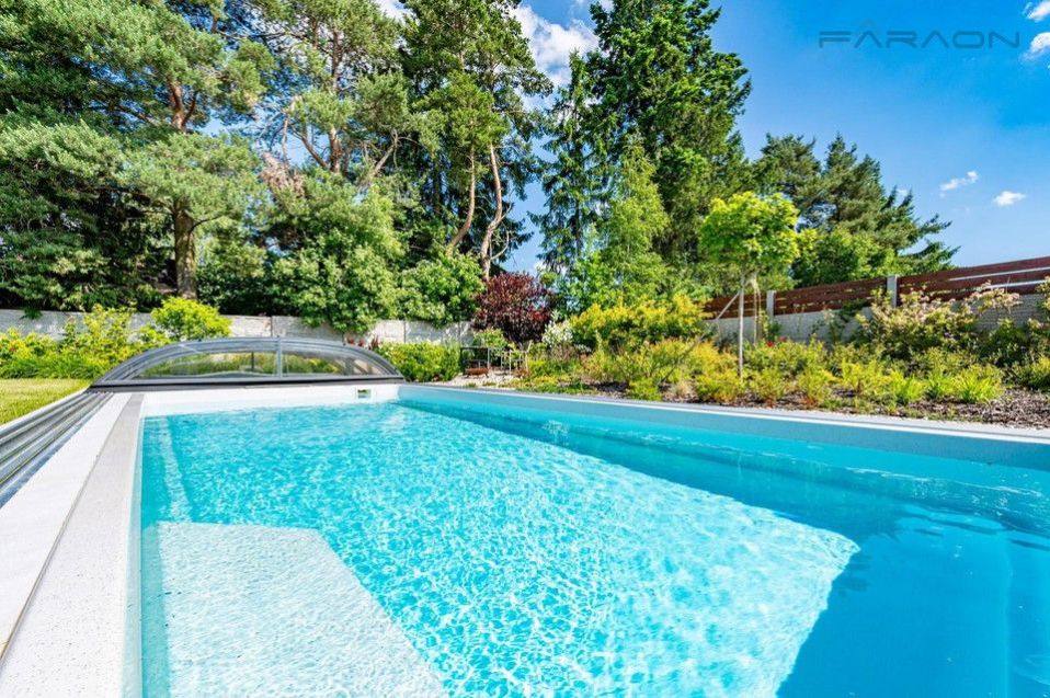 Prodej moderní pasivní a vzdušné novostavby (A) z roku 2021 vytápěné tepelným čerpadlem, včetně vyhřívání zastřešeného bazénu (7,2 x 3,4 m) se slanou vodou a protiproudem, splňuje veškeré nároky na bydlení vyššího standardu v přírodě s nízkými provozními náklady, a to v luxusním jednopodlažním domě s rekuperací vzduchu. Dům nabízí vzdušný a slunný interiér na krásném, rovinatém a slunném pozemku o velikosti 1 132 m v klidné rezidenční části obce Mukařov Srbín nedaleko Říčan, pouhých 20 km od Prahy. Pozemek zahrnuje upravenou zahradu s automatickým zavlažováním. Pozemek zahrnuje upravenou zahradu s automatickým zavlažováním a designový zahradní domek se sociálním zařízením (koupelna, toaleta), samostatným pokojem a technickou místností (sklad), vše lemováno vzrostlou zelení, zděným plotem a hliníkovými lamelami, které zajišťují maximální nerušené soukromí a zároveň pocit intimity a ničím nerušeného klidu.