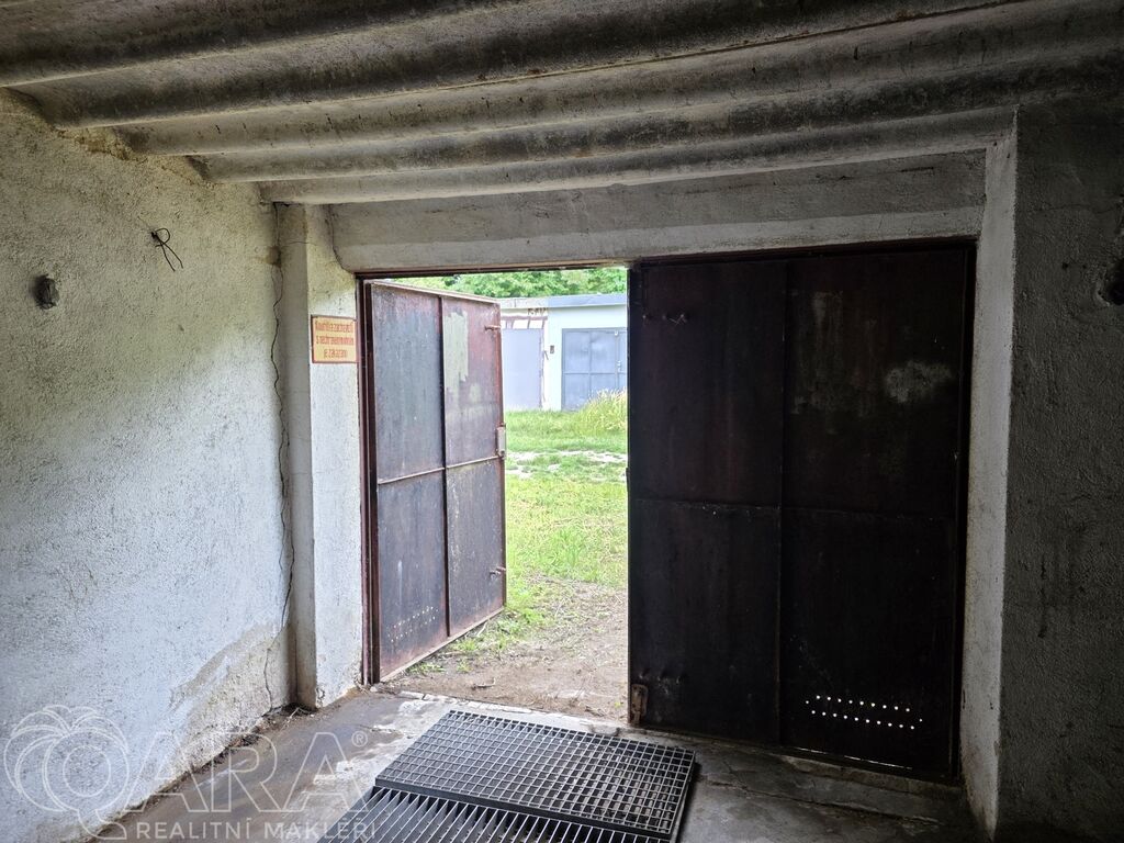 Šířka vrat 240cm i výška vrat 186cm jsou standardních rozměrů a umožňují pohodlný vjezd i novým, stále se zvětšujícím automobilům. Vnitřní rozměry jsou následující- 290cm je šířka garáže a 572cm je délka od zadní stěny po vrata. Výška 209cm v nejnižším bodě a 240cm v nejvyšším bodě v zadní části garáže. Garáž je bez elektřiny. Garáž je historicky propojena s vedlejší garáží a řešení je na domluvě.