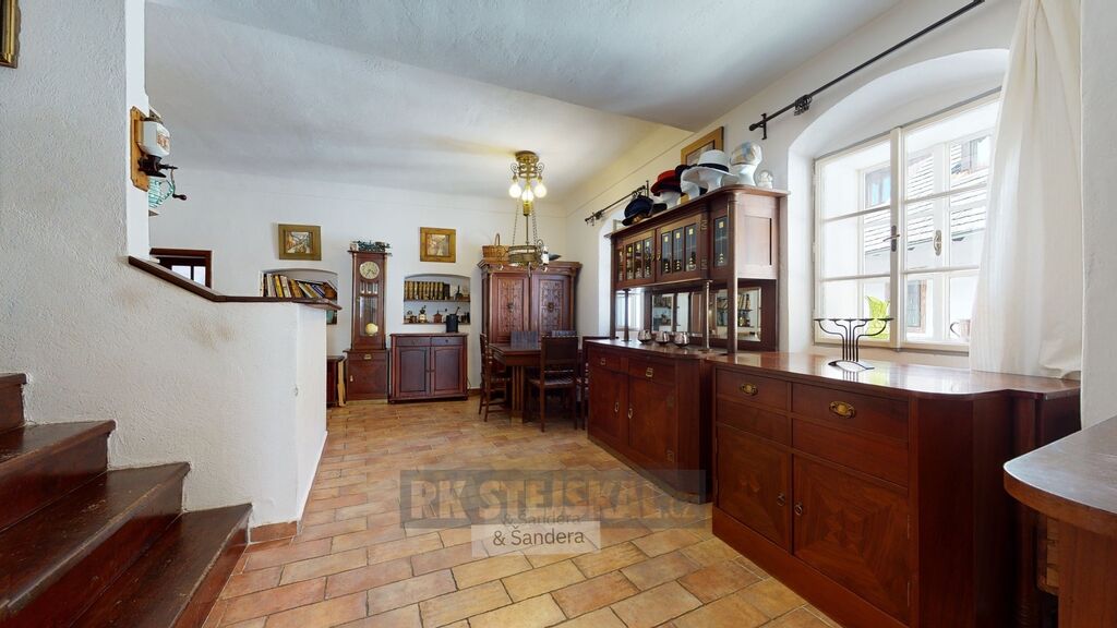 Prodej velice atraktivního, historického domu ze 14. století, s obytnou částí a penzionem v samém centru Českého Krumlova, na ulici Masná, 200 m od hradu a zámku.Výjimečný dům po celkové rekonstrukci a modernizaci, tak aby odpovídal současným požadavkům bydlení a byla zachována jeho historická hodnota. Dům s apartmánem v přízemí domu, který má svou koupelnu s vanou, umyvadlem a saunou, samostatné WC, dále v přízemí vstupní hala, prostorná technická a skladovací místnost s oknem, vstup na schodiště do patra domu, v patře a podkroví prostorná bytová jednotka v členění 4+kk (ve dvou podlažích) s příslušenstvím a s terasou (nebo malým dvorkem) do vnitrobloku, koupelna se sprchovým koutem, s umyvadlem a WC, vikýřové okno. Pro lepší představu o členění a celkové dispozici domu doporučuji prohlédnout 3D virtuální animaci objektu ve foto k nemovitosti (procházejte a prohlížejte za pomoci myši).Doporučuji: velice atraktivní nemovitost, nemovitá kulturní památka, v jedné z malebných uliček historického jádra Českého Krumlova, veškeré info u makléře zakázky.