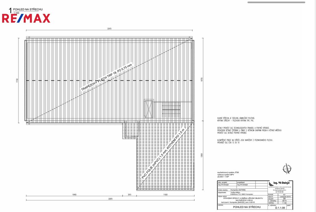 Kompletní projektová dokumentace bude k nahlédnutí při osobní prohlídce na nemovitosti.