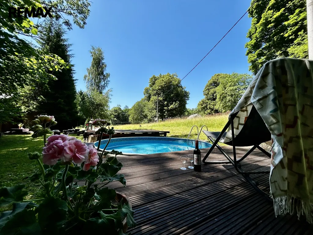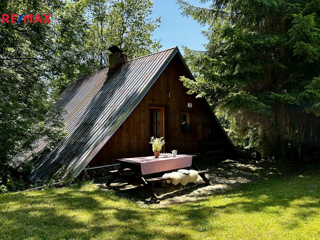 Zrekonstruovaná chalupa stojící v klidné části obce, kde je zajištěno soukromí díky velkému pozemku (louka, les). K dispozici je venkovní terasa s grilem, zahradním nábytkem, dětská houpačka, pískoviště, hřiště na volejbal nebo nohejbal, bazén. Nemovitost se skládá z přízemí a patra. V přízemí se nachází plně vybavena kuchyně, obývací pokoj, koupelna a technická místnost. Dále je k dispozici lyžárna (popř. uložení kol). Dubové schody vedou do salonku prvního patra, kterým je možnost vstoupit do 4 ložnic a vestavěného patra pro dvě osoby. Chalupa poskytuje ubytování pro 6 osob ve 4 ložnicích. Nemovitost lze využít k soukromému bydlení nebo jako investiční příležitost k pronájmu, vzhledem k tomu, že je celoročně obyvatelná a přístupná.