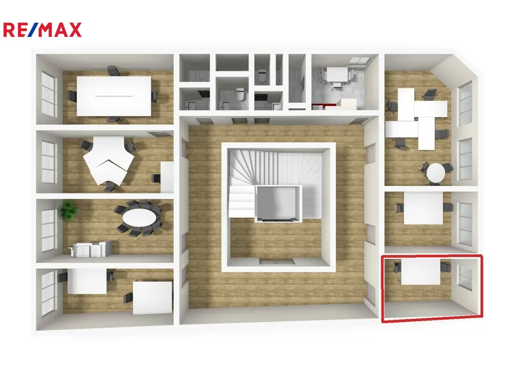 V tuto chvíli jsou k pronájmu volné celkem 4 kanceláře ve 4. nadzemním podlaží. Naskýtá se tak možnost pronajmout současně několik nebo i všechny kanceláře najednou. Nájemné za tuto kancelář je 1.260 Kč měsíčně bez DPH (DPH hradí pouze osoba/firma, která je plátcem DPH). Nájemník dále hradí energie ve výši 1.311,- Kč měsíčně včetně DPH.