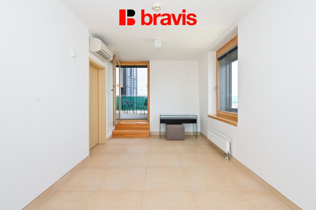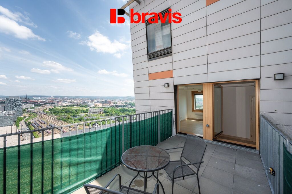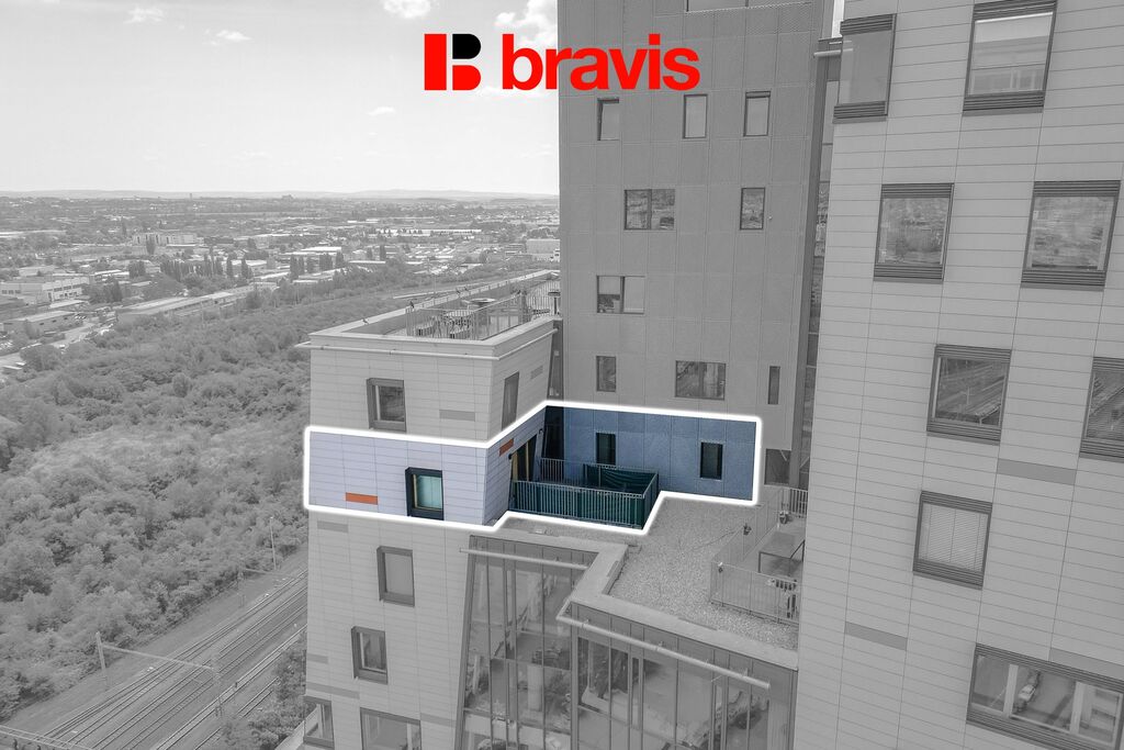 Apartmán o podlahové ploše 97 m2 poskytuje výjimečné podmínky pro bydlení, naprostý klid a jedinečný výhled na Brno a okolní krajinu. Dispozičně je tento apartmán řešen jako 3+kk a hlavní dominantu tvoří prostorná kuchyň s obývacím pokojem a přímým vstupem na terasu (12 m2), která slouží pro relaxaci či k posezení. Obytný prostor doplňují dva prostorné pokoje, nadstandardní koupelna se sprchovým koutem, samostatné WC a praktická šatna s úložným prostorem. Samozřejmostí jsou předokenní žaluzie a klimatizace v celém prostoru apartmánu, kterou lze regulovat pomocí moderních technologií.