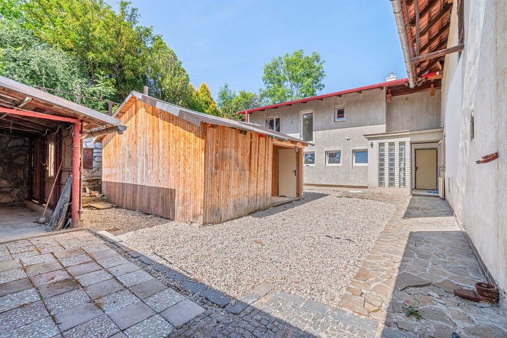 Prostorný patrový rodinný dům, který svojí dispozicí splňuje nároky na dvougenerační bydlení, je nyní koncipován jako dva samostatné byty. Na uzavřeném dvoře se nachází dva sklepy (jeden vinný), zastřešené posezení, krytý průjezd, dílna, udírna.