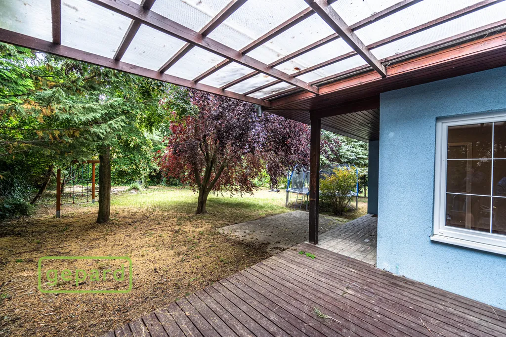 Na udržované zahradě (568 m2) jsou okrasné dřeviny a keře, třešeň, dřevěný domek na zahradní nářadí a ohniště.