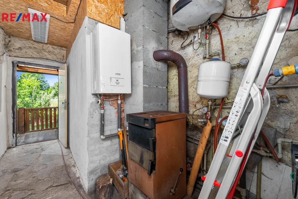 Nabízený rodinný dům je napojen na obecní vodovod. Vytápění domu vč. TUV je zajištěno pomocí ústředního topení s plynovým kotlem i kotlem na tuhá paliva. Garsoniéra je vytápěna elektrokotlem, ohřev vody zajišťuje elektrický bojler. Odpady jsou svedeny do obecní jímky, elektřina 220/380V. Na rodinný dům z jižní strany navazuje zahrada, která není součástí prodeje.