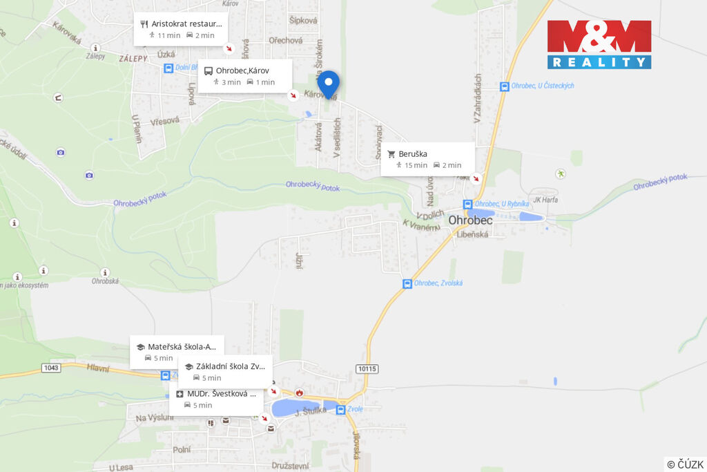 Klidná lokalita v blízkosti přírody s výbornou dostupností do Prahy.