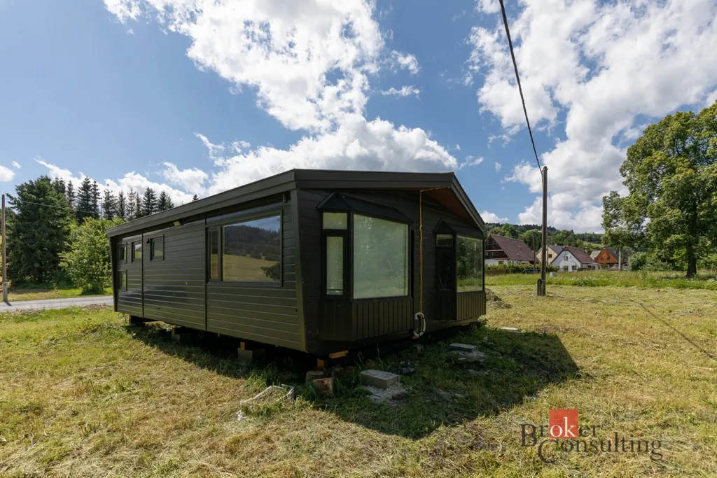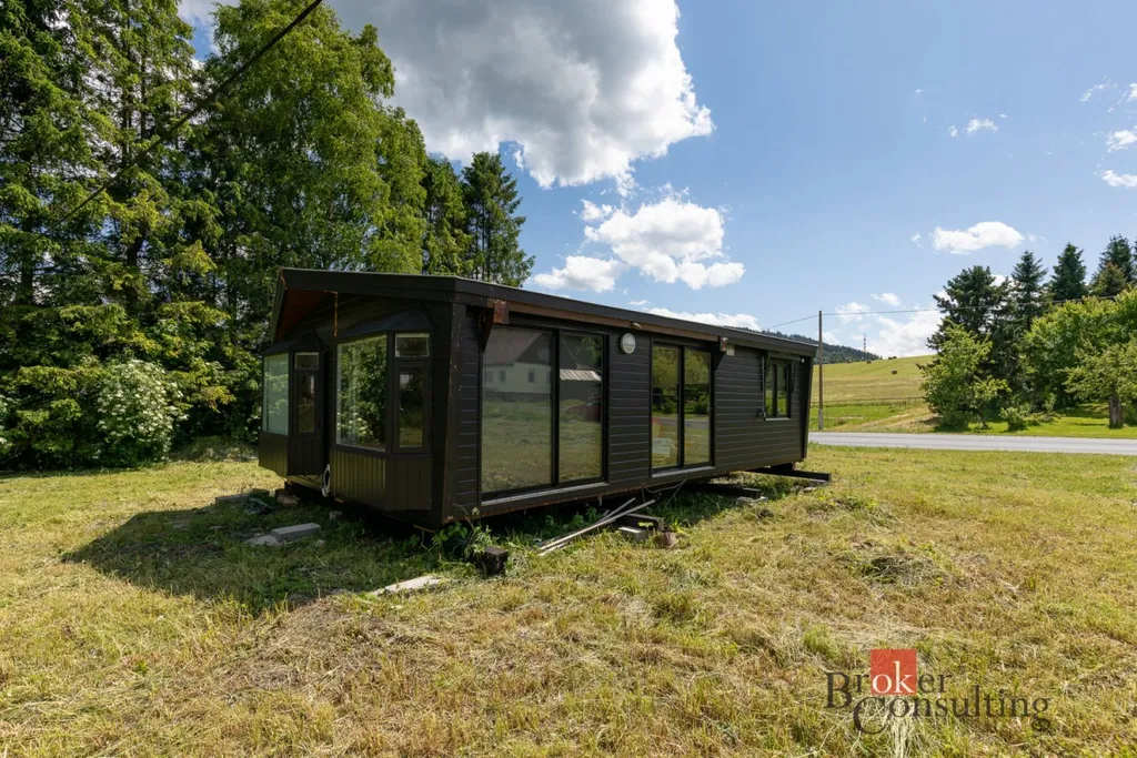 Nabízíme krásný stavební pozemek a zahradu v klidném podhůří Jeseníků o výměře 1470m2, již nachystané i desky na verandu mobilheimu.