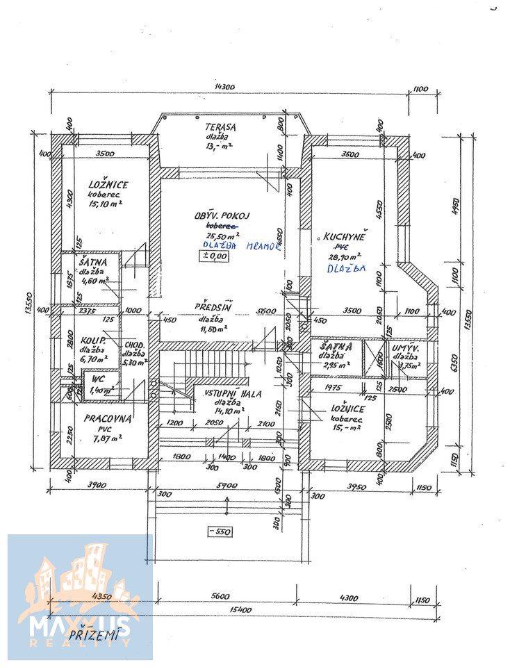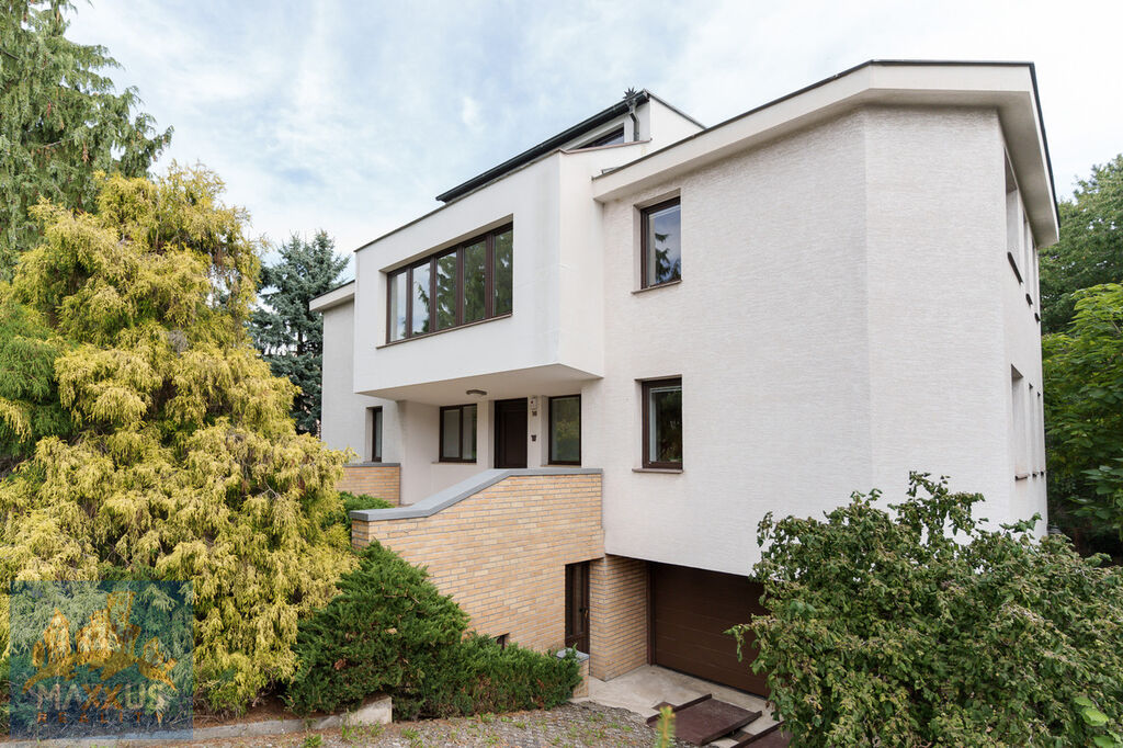 Pronájem nadčasové dvougenerační vily o dispozici 11+2 se zahradní terasou a garáží. Vila se nachází v oblíbené a vyhledávané lokalitě Prahy 4 – Lhotka. Vila se zastavěnou plochou 236 m2 leží na pozemku s rozlohou 1044 m2. Na pozemku zahradou se vzrostlou a udržovanou vegetací. V blízkosti příroda a skvělá dopravní dostupnost - tram, bus, v okolí také mezinárodní škola. Dům o velkorysé užitné ploše 436 m2 se rozkládá ve třech podlaží. V suterénu domu se nachází hala se schodištěm, ze kterého se vchází do kotelny/prádelny, garáže, sklepu a obytné části. Z obytné části je vstup do vybavené kuchyně a ložnice s vlastní šatnou a koupelnou. K obývací místnosti náleží zahradní terasa 13 m2 ze které je dále vstup do zahrady. V přízemí domu se nachází vstupní schodišťová hala (komunikační uzel) s předsíní a prostorným obývacím pokojem vybaveným krbem na dřevo. Z obývacího pokoje dále vstup do ložnice se šatnou, koupelnou, samostatnou toaletou a pracovnou. Dále je zde spotřebiči vybavená kuchyně o rozloze 28,9 m2. V přízemí domu je samostatný vchod ze vstupní haly do hostinského pokoj s vlastní šatnou i koupelnou. Patro domu je dispozičně řešeno stejně jako přízemí. V podkroví se nachází ateliér vhodný pro pracovnu a úložné prostory. Parkování je možné v garáži či na pozemku. Energie se převádí na nájemce (měsíční odhad za celý dům okolo 12.000,- Kč/měsíc). Dům je volný k nastěhování ihned. Plánky domu jsou na konci galerie. PENB nebyl dodán, a tudíž třída energetické náročnosti je dle vyhlášky 148/2000 Sb. uvedena jako G. Makléř doporučuje prohlídku.