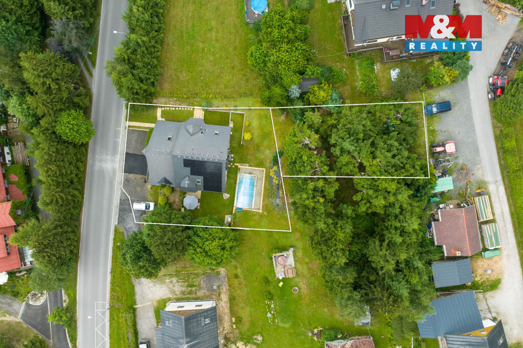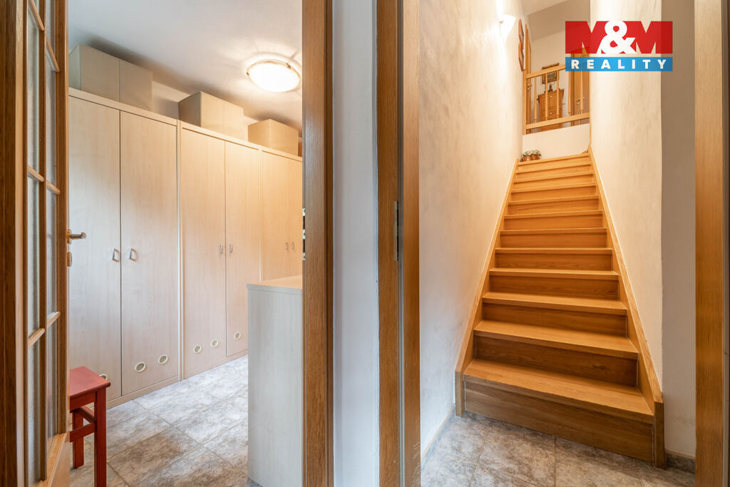 Solidní rodinný dům z r. 2005 o dispozici 4+1. Kromě bydlení nabídne i 2 zařízené apartmány na pronájem s odděleným vstupem, s vlastními sociálními zařízeními a kuchyní. Dům se rozkládá ve 2 NP a 1 PP s technickým zázemím - dílna, kolárna, sklad, garáž, kotelna s prádelnou, šatna. Srdcem domu je obývací pokoj s balkonem (28,1 m²) ve vysokém otevřeném prostoru, procházející přes 2 podlaží, který zaujme především velkými atypickými okny. Na obývací pokoj navazuje vkusně zařízená kuchyně s jídelnou se vstupem na terasu. Dále v obytné části najdeme pracovnu se žehlírnou, 2 ložnice, přičemž hlavní ložnice disponuje šatnou průchozí do prostorné koupelny s vanou a sprchovým koutem. Stavba je vybavena pokročilými technologiemi pro úsporu energií. Vytápění je zajištěno tepelným čerpadlem s možností dotápění kondenzačním plynovým kotlem, na střeše jsou osazeny FTV solární panely. V celém domě je rozveden centrální vysavač. Na zahradě se nachází bazén s vl. tepelným čerpadlem a pískovou filtrací.