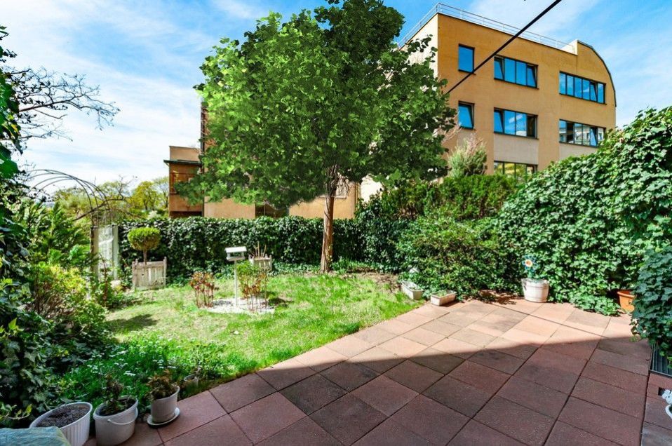Prodej prostorného bytu 2+kk s terasou a předzahrádkou se vzrostlou zelení, s garážovým stáním a sklepem v atraktivní a  klidné Rezidenci Zvonařka na Královských Vinohradech s recepcí, 24 hod ostrahou, vnitřním bazénem, terasou s neopakovatelnými výhledy na Prahu a privátním upraveným parkem ve vnitrobloku.