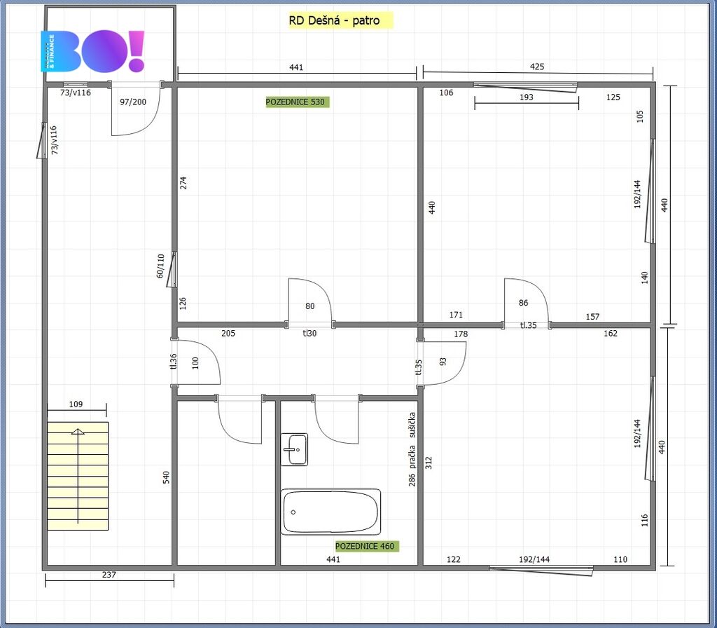 Dům se nachází v blízkosti lesů, ideální pro milovníky přírody a tichého bydlení. Tento patrový rodinný dům se dvěma podlažími disponuje zastavěnou plochou 118 m² a užitnou plochou 138 m², což poskytuje dostatek prostoru pro komfortní život. Pozemek má výměru 151 m², ale je možné okolní pozemky od současného majitele odkoupit.