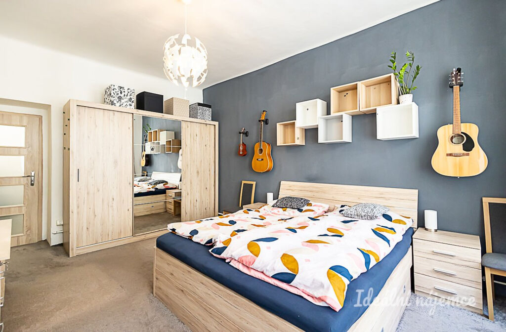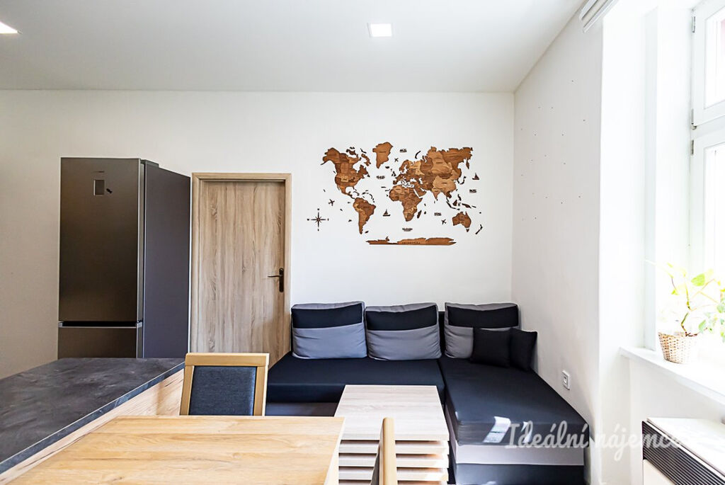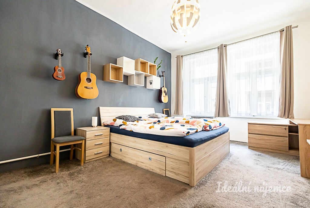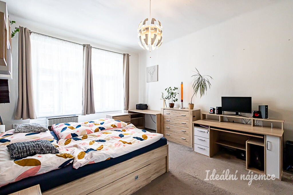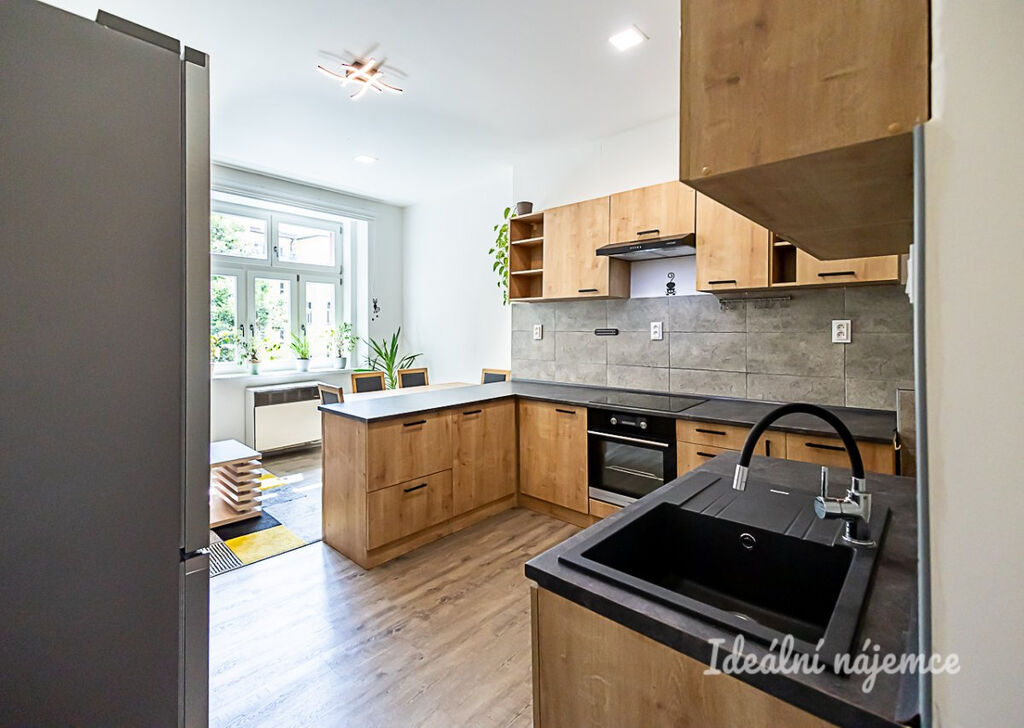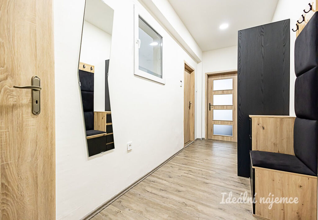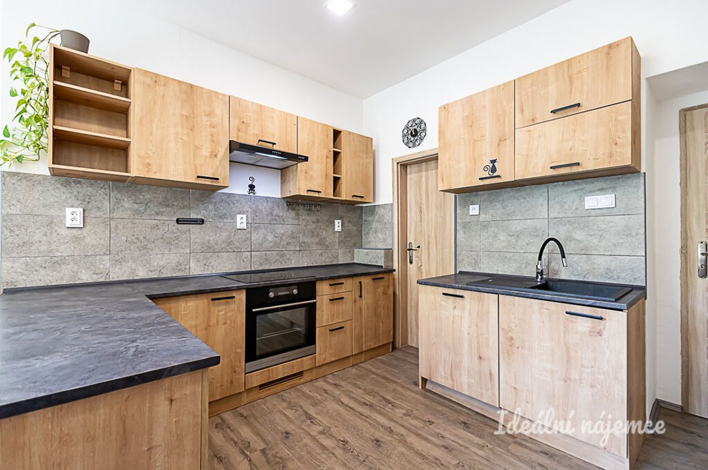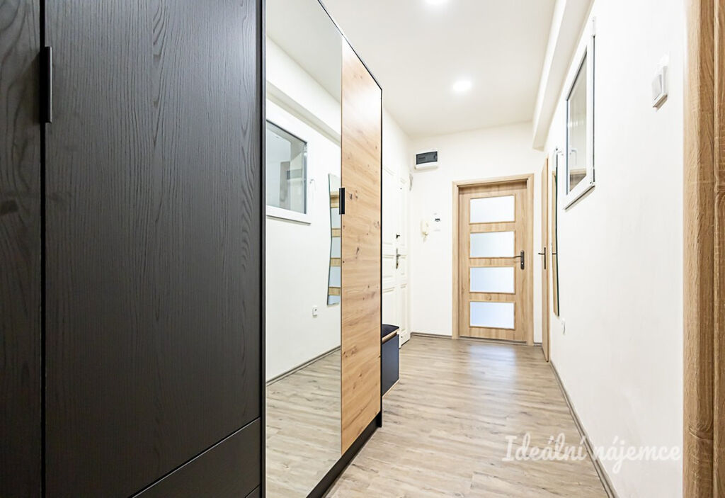 Byt se pronajímá nezařízený – nábytek na fotografiích bude odstěhován, takže si ho můžete vybavit podle vlastních představ. Kuchyňský kout je vybaven myčkou, elektrickou troubou, varnou deskou a digestoří. Obývací část i obě ložnice jsou volné k zařízení. V koupelně je sprchový kout, umyvadlo se zrcadlem a koupelnová skříňka. Toaleta je samostatná.