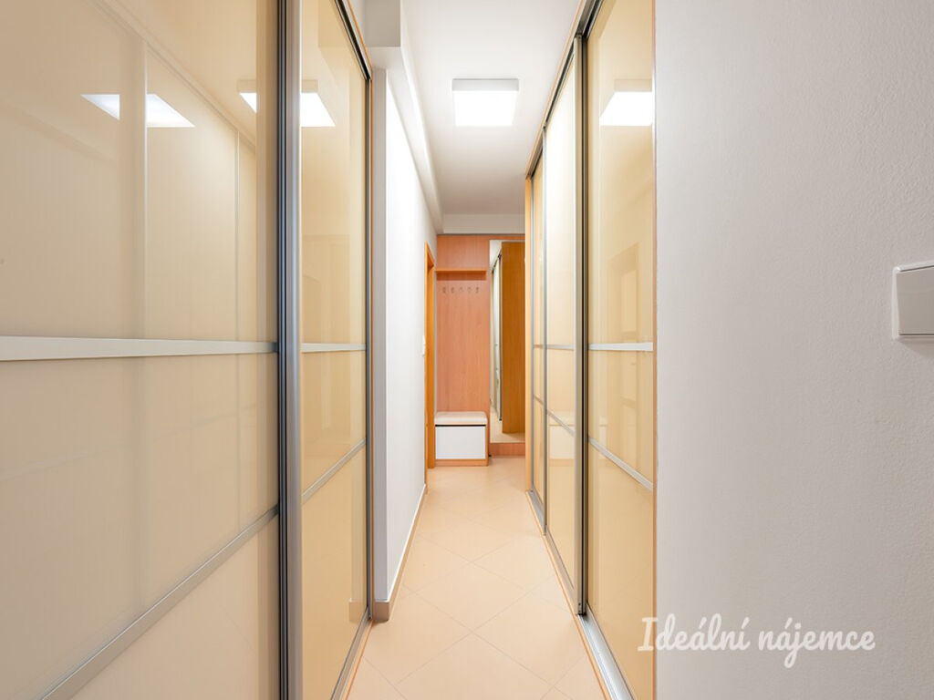 Byt se nabízí plně vybavený. Kuchyně disponuje lednicí s mrazákem, myčkou, elektrickou troubou, varnou deskou, mikrovlnnou troubou a digestoří. Obývací část je zařízena jídelním stolem se 4 židlemi, pohovkou, konferenčním stolem, komodou, skříňkami, obývací stěnou, TV a audio soustavou a klimatizací. Součástí ložnice je postel s matrací, noční stolky, držák TV, vestavěná skříň a stůl s židlí. V koupelně je vana, umyvadlo, koupelnová skříňka, zrcadlo, závěsné WC a pračka. V předsíni je vestavěná skříň.