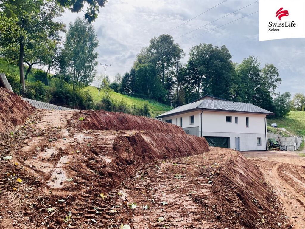 Pozemek je velký tak akorát, je upraven do teras, které zajišťují soukromí a přitom je vše pohodlné. Zahrada, která tady může vzniknout, se může stát chloubou tohoto nádherného domu. Nově vzniklé kaskády dávají prostoru zcela odlišné možnosti pro osazení keři a květinami. I vodní prvek by mohl celou strukturu doplnit.