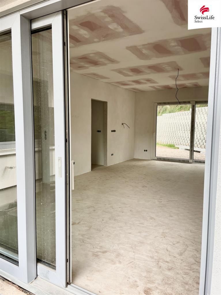 Dispozičně je byt v patře, dominantou obytného prostoru s kuchyní jsou dvě velkoformátová okna se vstupem na terasu a do zahrady. Tento celoprosklený vstup vás zavede z jedné strany na terasu, z druhé strany do míst, kde může být velký bazén. Tyto posuvné stěny dodávají obývacímu pokoji neskutečnou atmosféru. Můžete sledovat západy slunce i padající vločky a to vše v naprostém soukromí.
