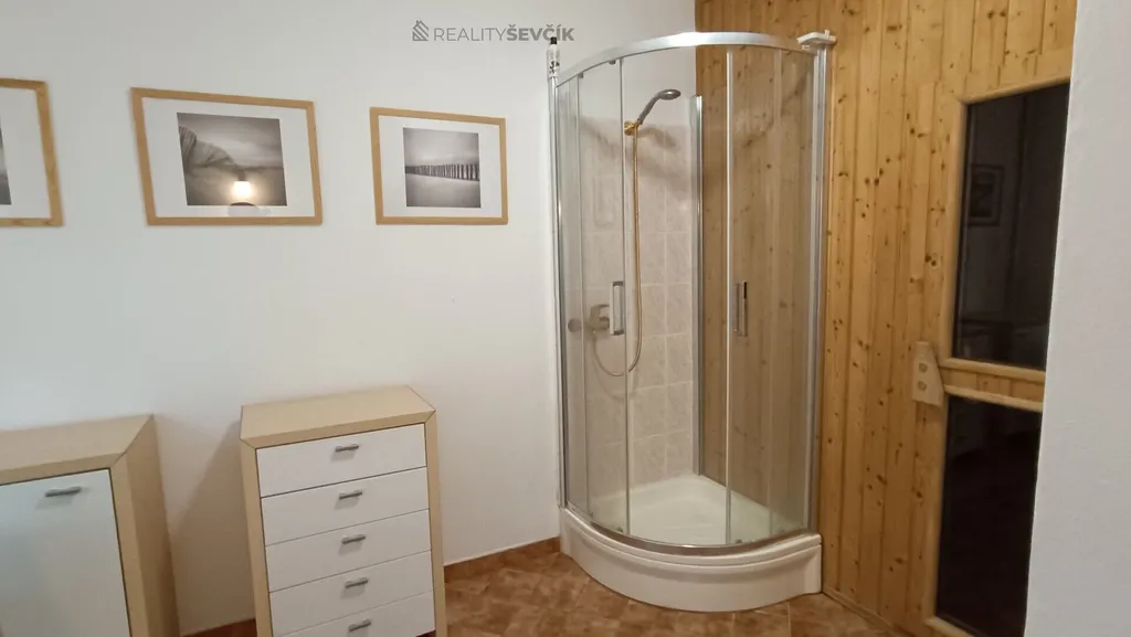 - Koupelna se sprchovým koutem a saunou
