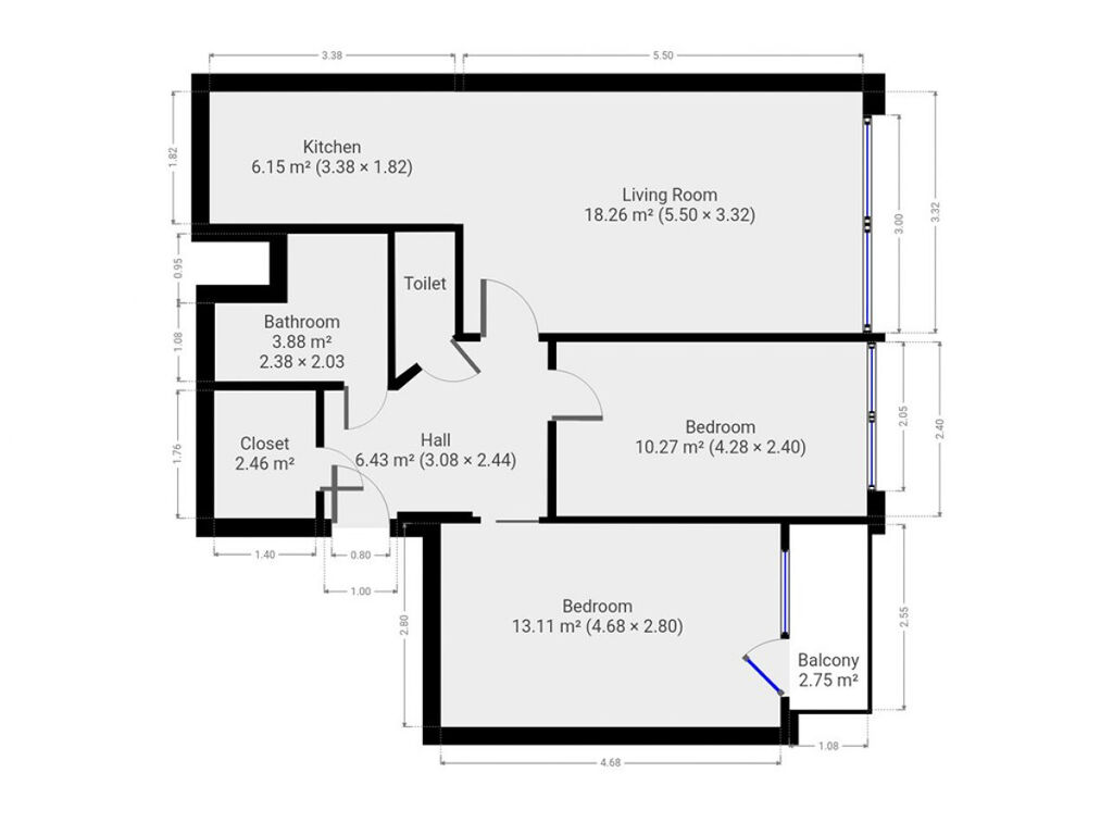 K dlouhodobému podnájmu nabízíme byt o dispozici 3+kk. Byt o celkové výměře 65 m2 se nachází v pátém patře panelového domu s výtahem. K bytu patří i balkón.