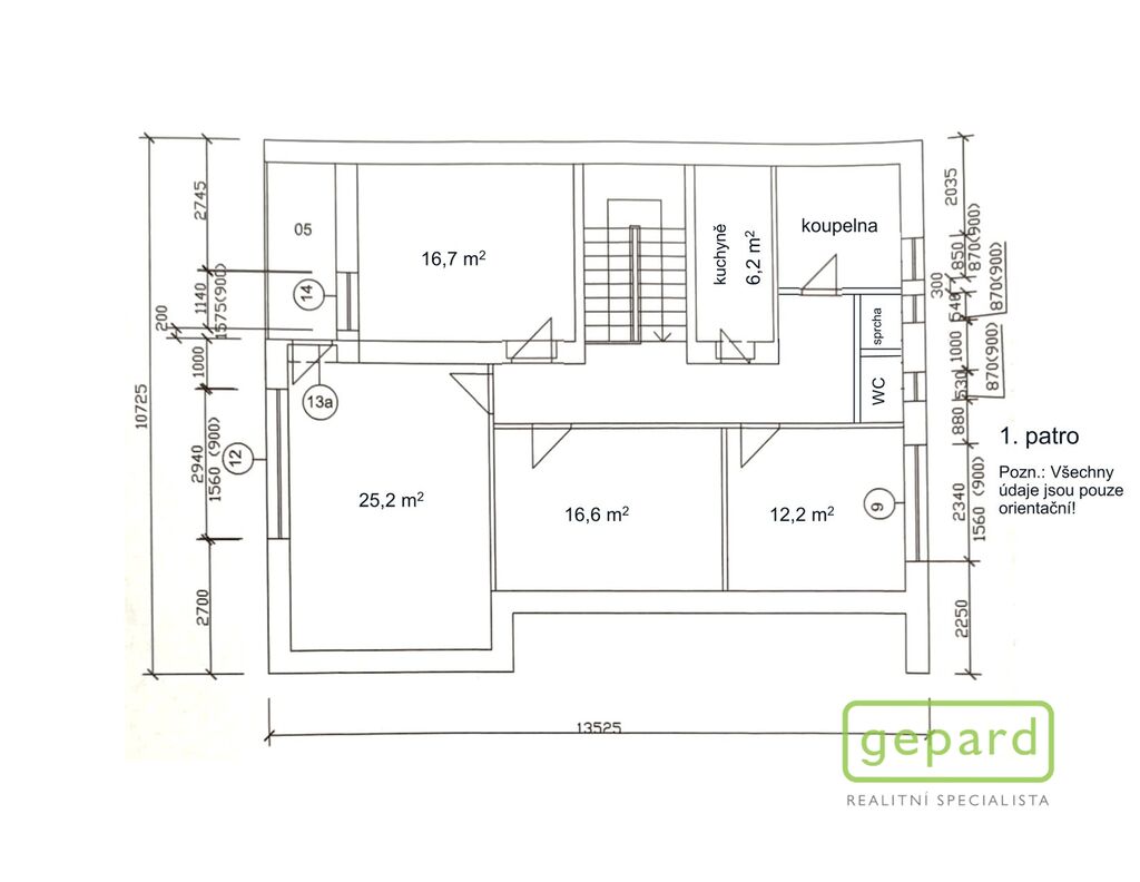 Výstupem po schodišti se dostaneme do 2.NP kde se nachází větší bytová jednotka sestávající ze 4 pokojů, kuchyně a sociálního zařízení.