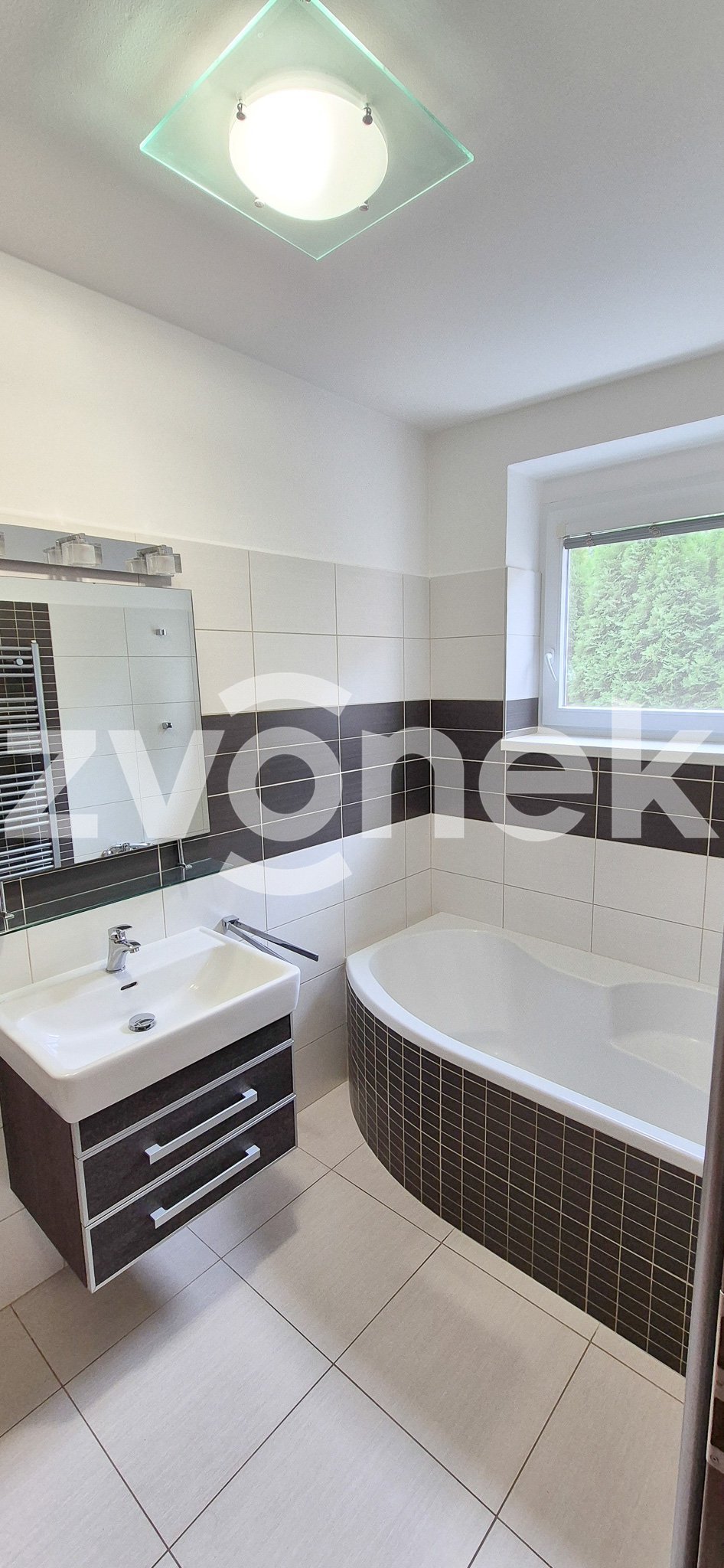 Nabízíme k dlouhodobému pronájmu byt 2+1 v centru Kostelce u Zlína. Jedná se o nadstandardní byt 2+1 (plocha 78 m2) s podsklepením (sklep 23 m2), se zastřešeným stáním pro auto, zahradou (350 m2) a pergolou s posezením (15 m2). Byt se skládá: chodbička s vestavěnou nikou pro kabáty + vestavěné police na boty. Kuchyně s plně vybavenou kuchyňskou linkou (vše zn. BOSCH) /lednice, mrazák, sklokeramická varná deska, horkovzdušná trouba, vysouvací digestoř + moderní osvětlení / jídelna, obývací pokoj + moderní osvětlení. Koupelna s vanou + koupelnový nábytek + přípojka na pračku + podlahové vytápění. Samostatné WC. Vše vybaveno osvětlením, dýhovanými dveřmi, některé v kombinaci s matným sklem. Ložnice = možnost dovybavení (na přání) italské stylové ložnice z masivu = postel 220x160 s matracemi, 2 noční stolky, 2 komody, 1 velká šatní skříň. Šatna. V místnostech jsou plovoucí dřevěné podlahy. V ložnici pocitově příjemný měkký vinyl. ZAHRADA: okrasná s posezením + zatravněné plochy pro sportovní aktivity. Dále je vybaven rozvody počítačových sítí. V oknech jsou namontované žaluzie. Ve ventilačních oknech sítě proti hmyzu. Možnost dovybavení pračkou Siemens. PLATEBNÍ PODMÍNKY: Cena pronájmu: 15.000 Kč / měsíc + měsíční záloha na energie 5.000 Kč podle počtu osob. Platba na 3 měsíců dopředu a v každém dalším období 1 měsíc předem na další 3 měsíce. Provize RK ve výši měsíčního nájmu vč. energií. Byt je ihned k nastěhování.