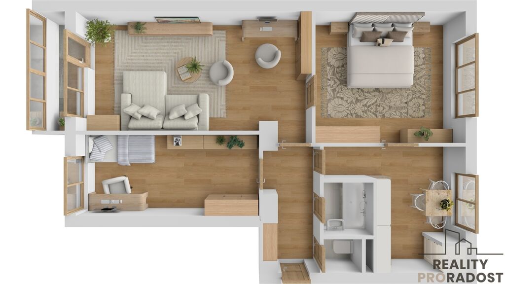 4. Orientace bytu na 2 světové strany= máte se na co dívat, sluníčko Vám svítí celý den a víte, co se děje za domem i před domem.