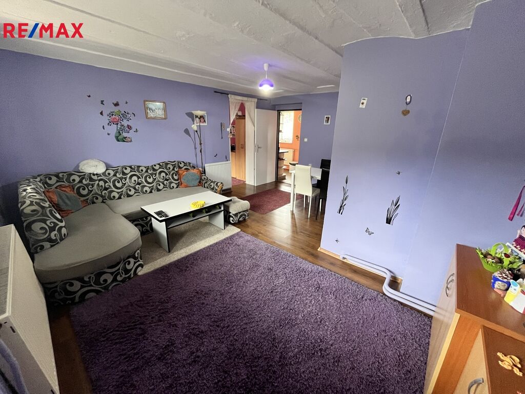 Jedná se o prodej samostatně stojícího rodinného domu o dispozici 3+1. Obytná část je dispozičně tvořena vstupní předsíní 2,50m2, koupelnou s vanou i WC 4,50m2, technickou místností 2,45m2, kuchyní 8,53m2, komorou 1,53m2, pokojem 19,52m2, pokojem 15,70m2 a menším pokojem 7,30m2, k obytné části dále navazuje kotelna s uhelnou a sklad. Podkrovní část je možné využít k další vestavbě pokojů. Střešní krytina je z roku 2018. Dům je napojen na obecní vodovod i kanalizaci, rozvod elektřiny je po rekonstrukci, rozvody vody i odpadů jsou též rekonstruovány. Vnitřní podlahy jsou betonové, krytinu tvoří PVC a keramická dlažba, vytápění ústřední kotlem na tuhá paliva, ohřev vody zajištuje bojler. Celková plocha pozemku je 205m2 z toho zastavěná je 119m2. Pro více informací volejte makléře nabídky.