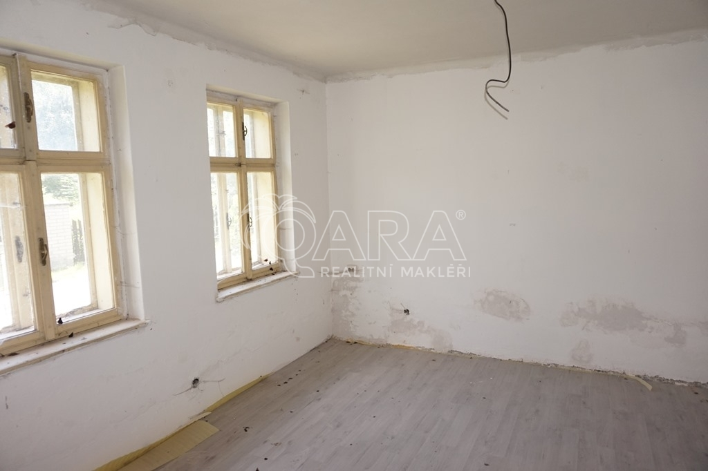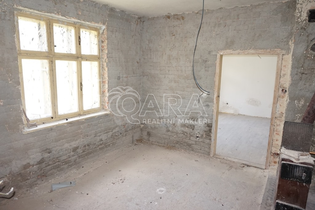 Nabízíme k prodeji rodinný dům určený ke kompletní rekonstrukci, která již započala vyklízecími a přípravnými pracemi a také částečně zhotovenou instalací elektřiny. Dům je rozdělen na dvě části rozdělené menším dvorem, které jsou v zadní části propojeny hospodářskou částí. Každá část by do budoucna šla používat samostatně například k pronájmu. Levá část domu sestává ze vstupní chodby a dvou obytných místností, dále vstupem na půdu pod sedlovou střechou a v zadní části místnostmi původně sloužícími jako chlévy, navazuje menší stodola s vraty do ulice. Pravá část je jedna obytná místnost s dalšími prostory na WC, koupelnu, případně opět půdní vestavbu. V této části je také malý kamenný sklep. Celkově se jedná o nemovitost v současném stavu neobyvatelnou, nicméně skýtající budoucímu majiteli prostor pro realizaci vlastních nápadů a přání. Financování Vám velice rádi zařídíme a zprostředkujeme.