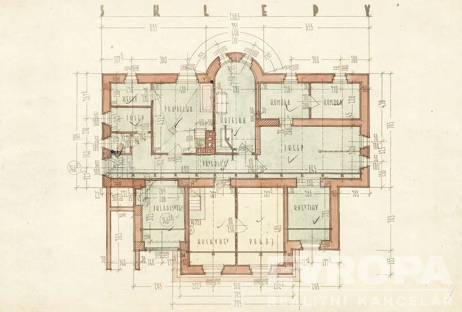 Celý dům je kompletně podsklepený. Sklepní prostory jsou zpřístupněné samostatným vchodem a dají se po rekonstrukci využít pro firemní i bytové využití.