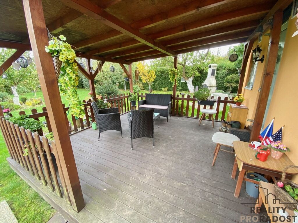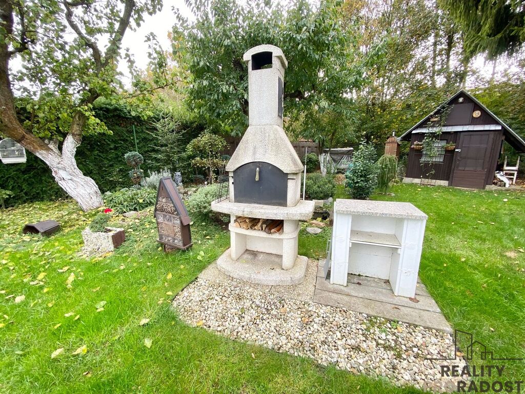 Na zahradě je umístěný mobilheim s terasou a posezením. Dispozičně je řešený jako 3+1, je zde prostorný obývací pokoj, kuchyně vybavená kuchyňskou linkou a jídelním koutem, dvě zařízené ložnice vestavěným nábytkem, koupelna se sprchovým koutem, umývadlem a WC. Je zde také úložný prostor s bojlerem. Mobelheim je zateplený, je připojený na vodu a elektřinu, odpad je sveden do jímky.