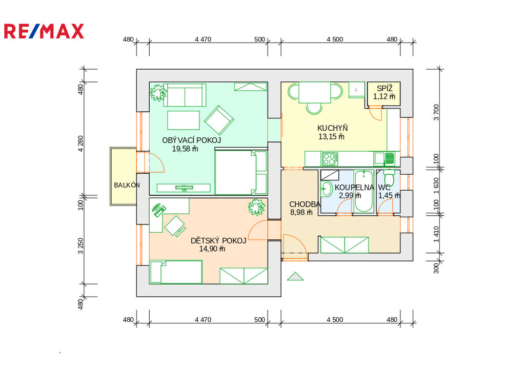 Byt se pyšní praktickým uspořádáním, které zabezpečuje dostatek prostoru pro všechny členy rodiny. Součástí nemovitosti je balkón o rozloze 2 m², ideální pro ranní kávu nebo odpolední relaxaci.