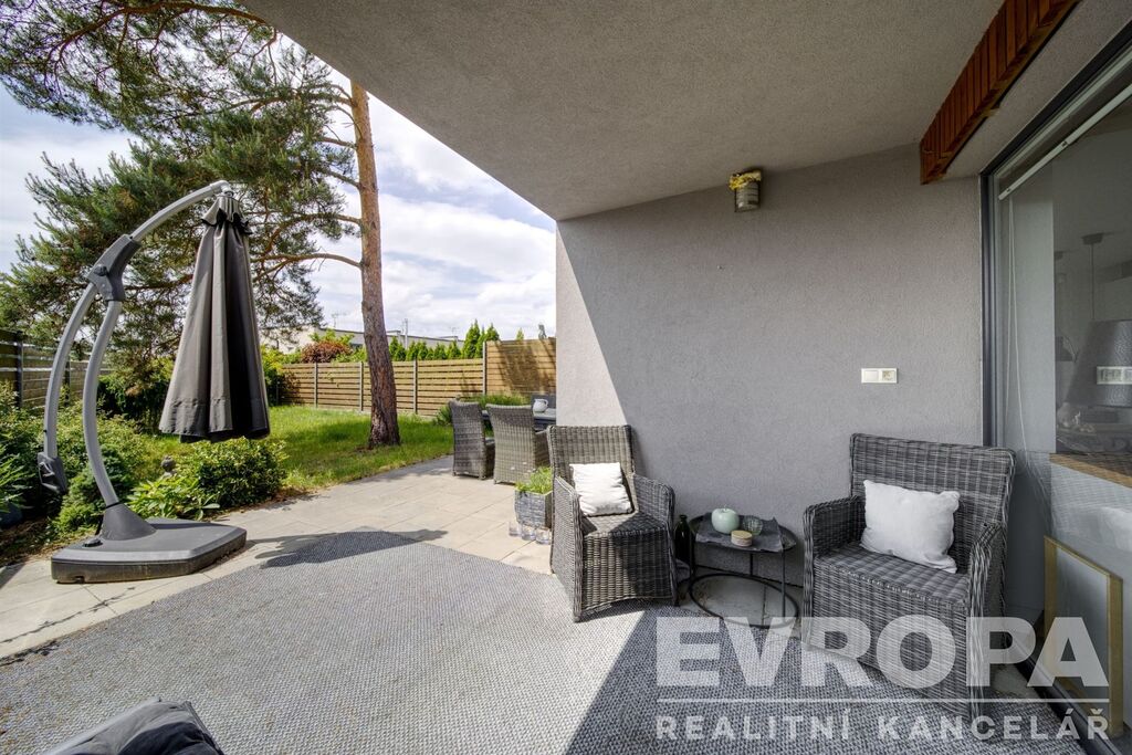 Novostavba je dispozičně řešena jako 4kk s garáží, balkónem, terasou a zahradou.