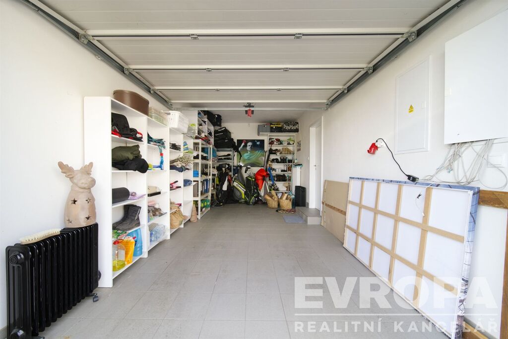V přízemí nalezneme hlavní obývací prostor s kuchyňským koutem a jídelnou s přístupem na terasu i zahradu. Dále je zde garáž opatřena elektrickými vraty propojena se vstupní chodbou s šatnou a samostatnou toaletou.