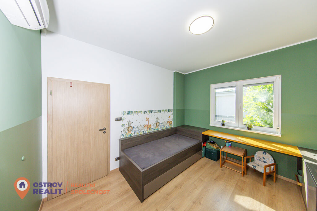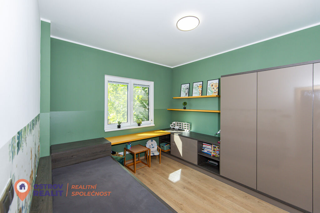 Dům dále nabízí tři pokoje, šatnu, technickou místnost, koupelnu s vanou i sprchovým koutem a samostatné WC – vše uspořádáno tak, aby denní provoz domácnosti byl co nejplynulejší.