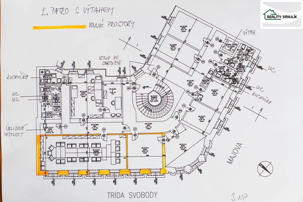 Pronájem prostor pro různé využití - centrum Chebu Nabízíme pronájem nebytových prostor umístěných ve 2. a 3. patře budovy s výtahem v samotném centru Chebu, pěší zóna. Jedná se o veřejnosti známé místo - dlouhodobě v budově sídlí Česká spořitelna. V současné době jsou k dispozici prostory viz. půdorysy. Některé kanceláře jsou průchozí. Na patře je jsou 2x kuchyňky, 4x WC, úklidové místnosti. Možno pronajmout vyobrazený nábytek. Měsíční nájemné na 1 m2 činí 135 Kč. Dále se k nájemnému připočítávají zálohy na služby (el. energie, voda, topení, odpad, úklid společných prostor, ostraha). Vhodné pro firmy potřebující vyřešit sídlo firmy. Dále budova nabízí možnost skladových prostor v suterénu - archivy atd. Bližší informace rádi sdělíme telefonicky či v RK. K dispozici ihned.