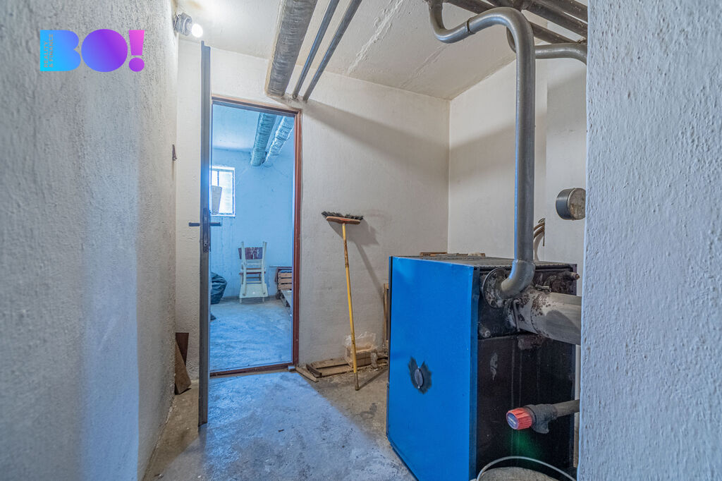 Součástí bytu jsou také dva prostorné sklepy o celkové výměře 28 m², z nichž jeden slouží jako kotelna – byt je vytápěn kotlem na tuhá paliva. V domě je již přiveden plyn, takže je zde možnost jednoduché instalace plynového kotle pro pohodlnější vytápění. Dále je možnost si vybudovat v bytě krbové kamna.