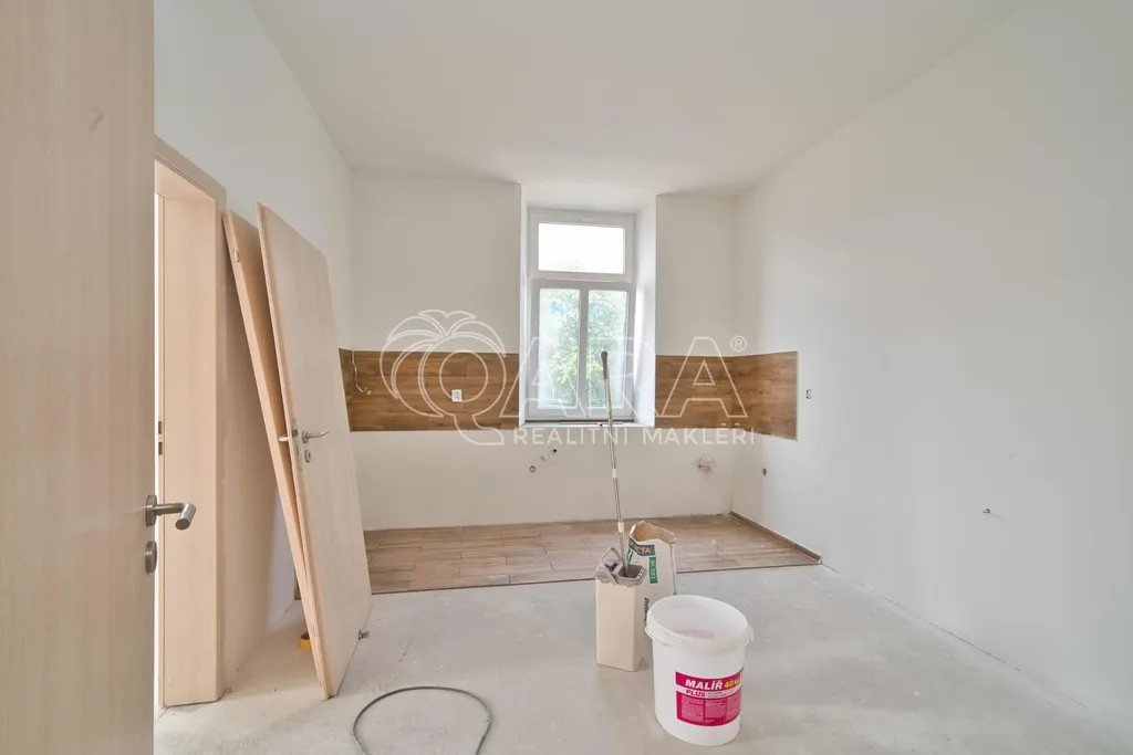 V bytě je započatá rekonstrukce, kde stačí dodělat štuky, podlahu, kuchyň, obložky a vymalovat. Nájemník si tedy může dotvořit byt dle vlastních představ.
