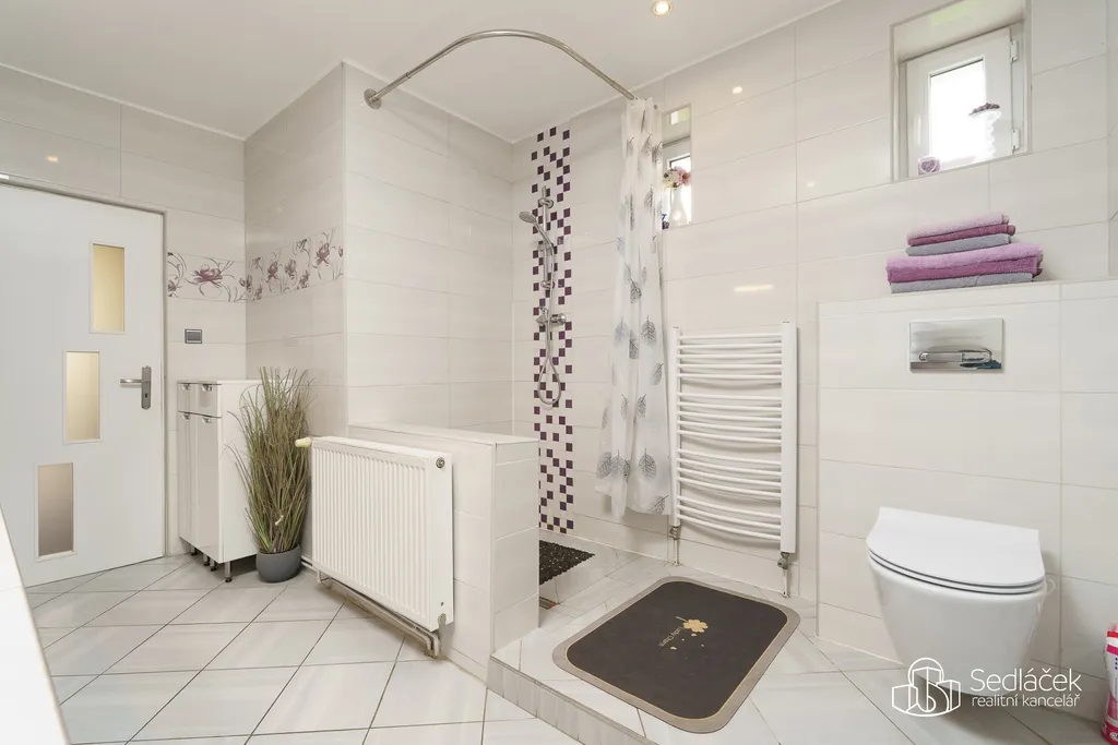 - V přízemí najdete vstupní předsíň, moderní koupelnu po kompletní rekonstrukci, novou kuchyni s vestavnými spotřebiči a obývací pokoj, který čeká na úpravy podle představ nových majitelů a technickou místnost.