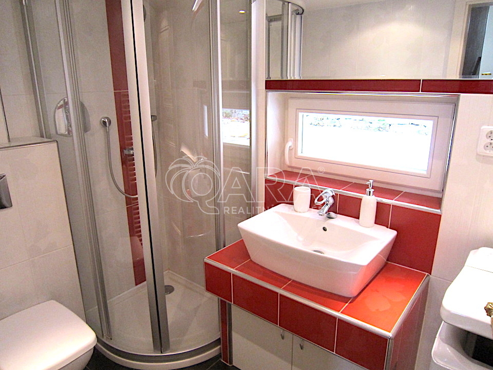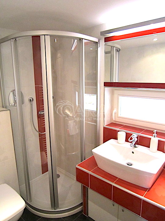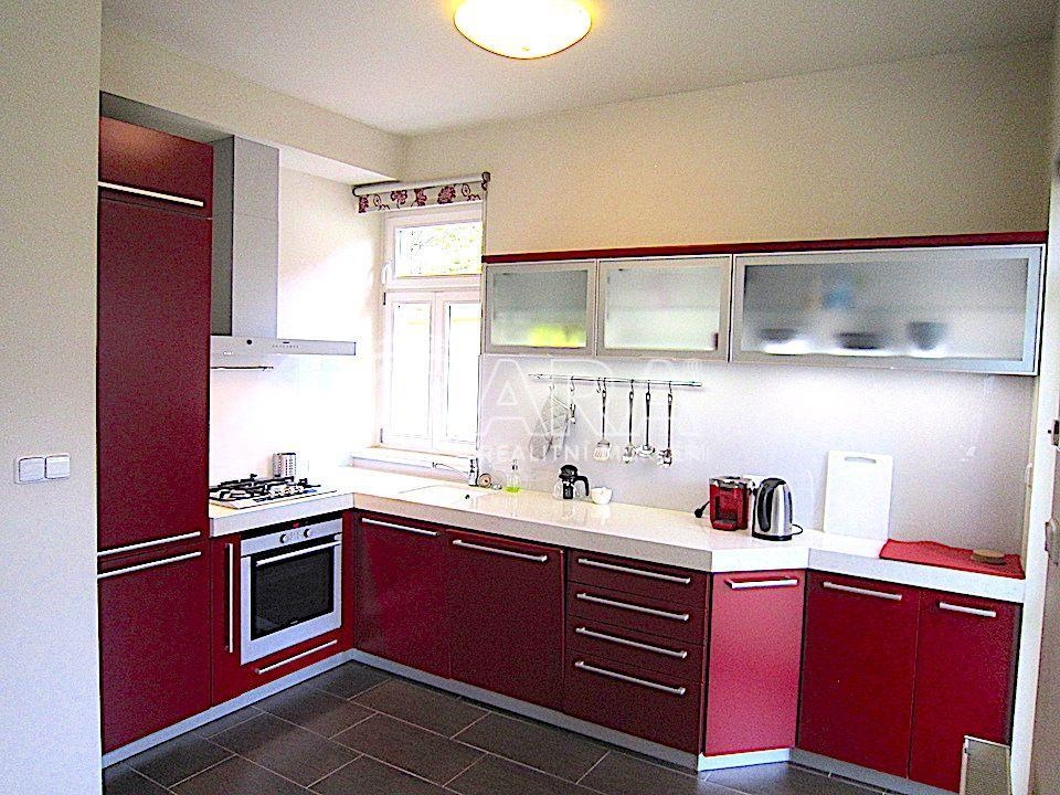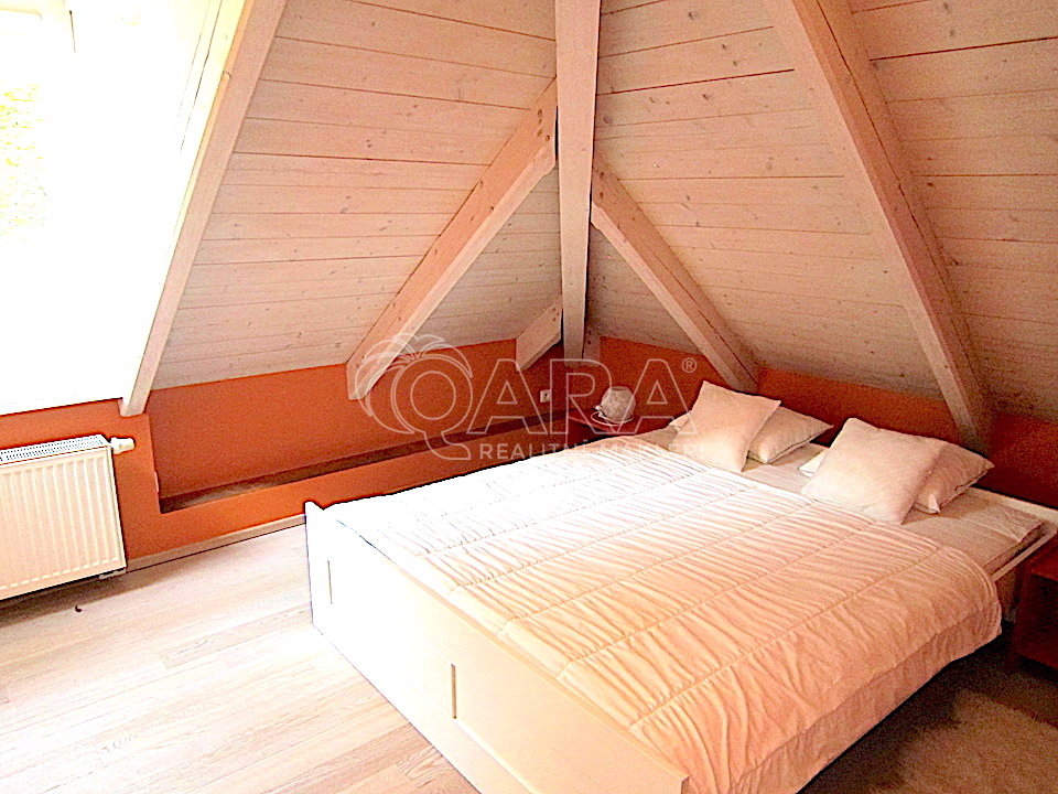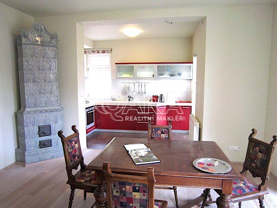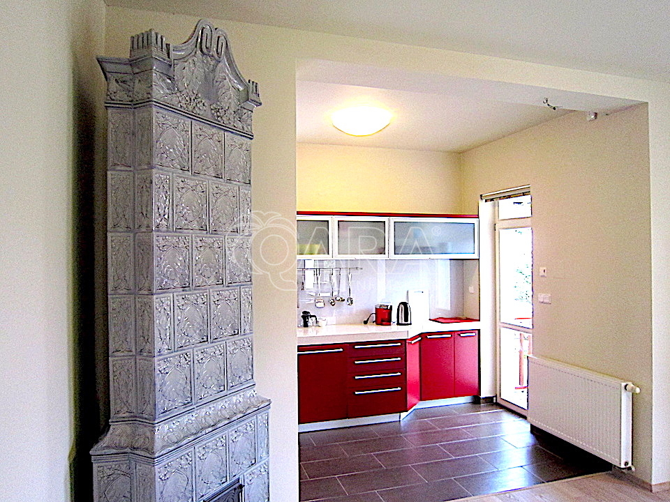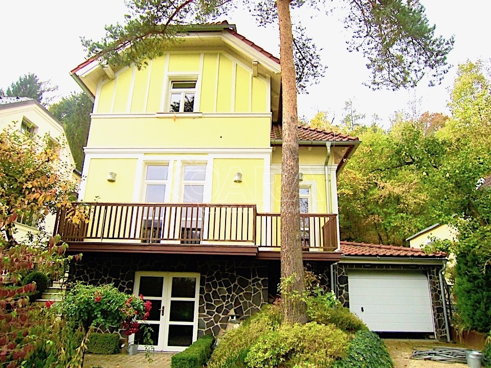 Zprostředkujeme Vám k pronájmu kompletně zrekonstruovaný dům , vilu 5+kk , s výměrou 159 m2 , situovaného ve svahu sousedícím s lesoparkem Belveder v klidné rezidenční zástavbě Zbraslav , stojícího na pozemku o celkové rozloze 949 m2 . Dům sestává z obývacího pokoje , kuchyně , plně vybavené velmi kvalitními spotřebiči , jídelním prostorem , kachlovými kamny s vestavěným elektrickým vytápěním , dále pak balkonem , koupelnou se sprchovým koutem , toaletou a velkou terasou . V patře jsou dvě podkrovní ložnice , koupelna se sprchovým koutem a toaleta. V přízemí domu se nachází společenská místnost , případně třetí ložnice s funkčním krbem a skladový prostor . Zachované jsou původní prvky nové dřevěné podlahy , byla položena nová dlažba vytápěna elektrickým topením , francouzská okna, vestavěné skříně a úložné prostory. Dům je velmi kvalitně zateplen , vytápí se plynovým kotlem , k dispozici je garáž a parkování na pozemku pro tři vozy. Dopravní spojení zajišťují autobusy MHD , ke stanici metra Smíchovské nádraží a komerčnímu centru Anděl . Měsíční náklady na spotřeby plynu a elektrické energie, bude nájemce hradit přímo dodavatelům, poplatky za spotřebu vody, odvozu odpadu, zálohu na revizi plynového kotle, zálohu na revizi spalinových cest a to ve výši 4.000,-Kč, budou hrazeny pronajímateli a tyto poplatky je tudíž nutno připočíst nad rámec prezentované ceny pronájmu. Vzhledem k těmto všem atributům , doporučujeme tento dům k pronájmu. Na vyhotovení energetického štítku čekáme a z tohoto důvodu uvádíme energetický štítek s označením G .