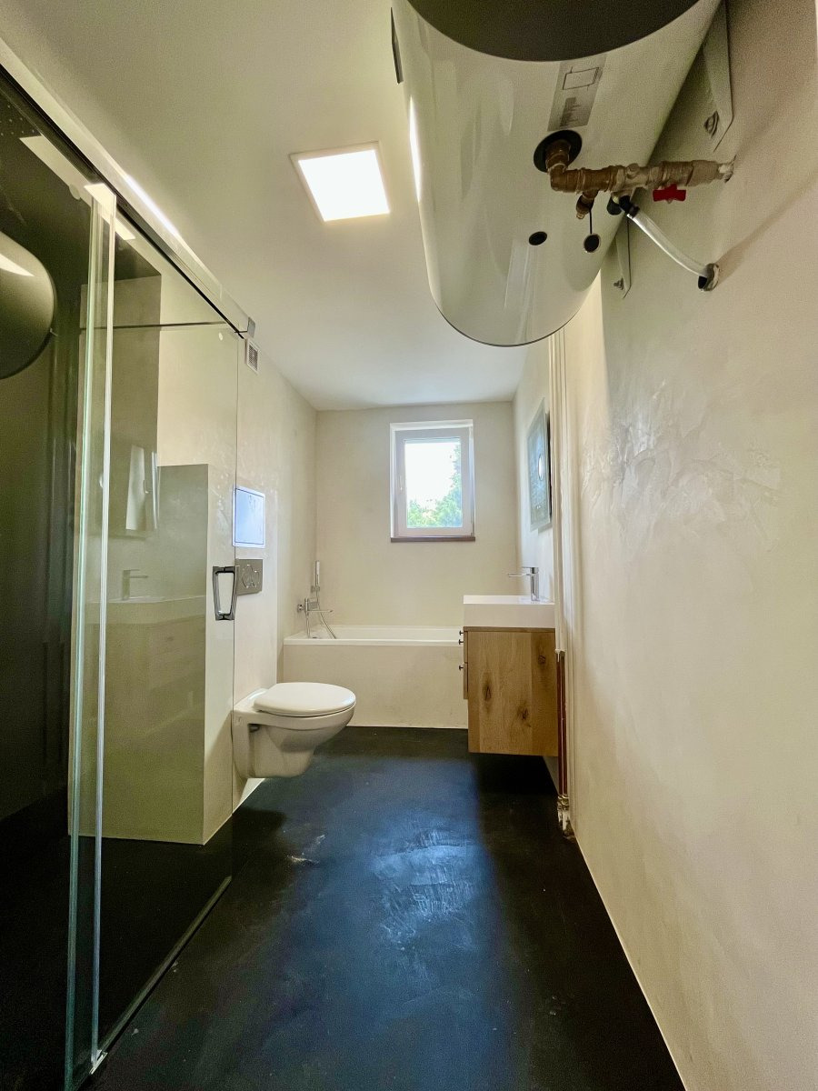 Koupelnu s vanou, sprchovým koutem, toaletou a bojlerem