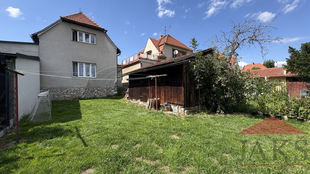 Popis: část. podsklepeno: sklípek pod shodami; 1.NP: vstupní chodba (schodiště do sklepa a do podkroví; kotel na T.P.), sam. WC, koupelna (vana, umyvadlo, el. boiler), kuchyň (kuch. linka s el. troubou se sklo.ker. deskou, digestoř) s jídelnou, obývací pokoj (krbová kamna); podkroví: podesta, 2x ložnice a půdička.