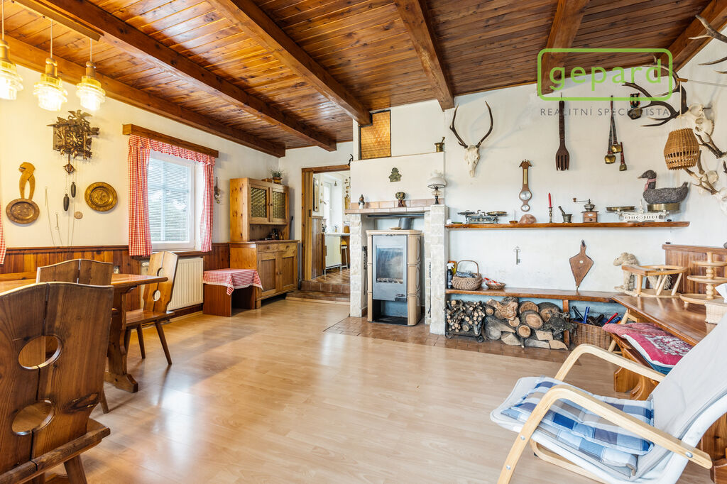 Dům je cihlový, ve velmi dobrém stavu, připravený k celoročnímu bydlení. Dispozice 4+1 s komorou, prostornou jídelnou a místem, kde to voní dřevem. O teplo se stará plynový kotel a krbová kamna, dům je napojen na vodu, elektřinu i plyn.