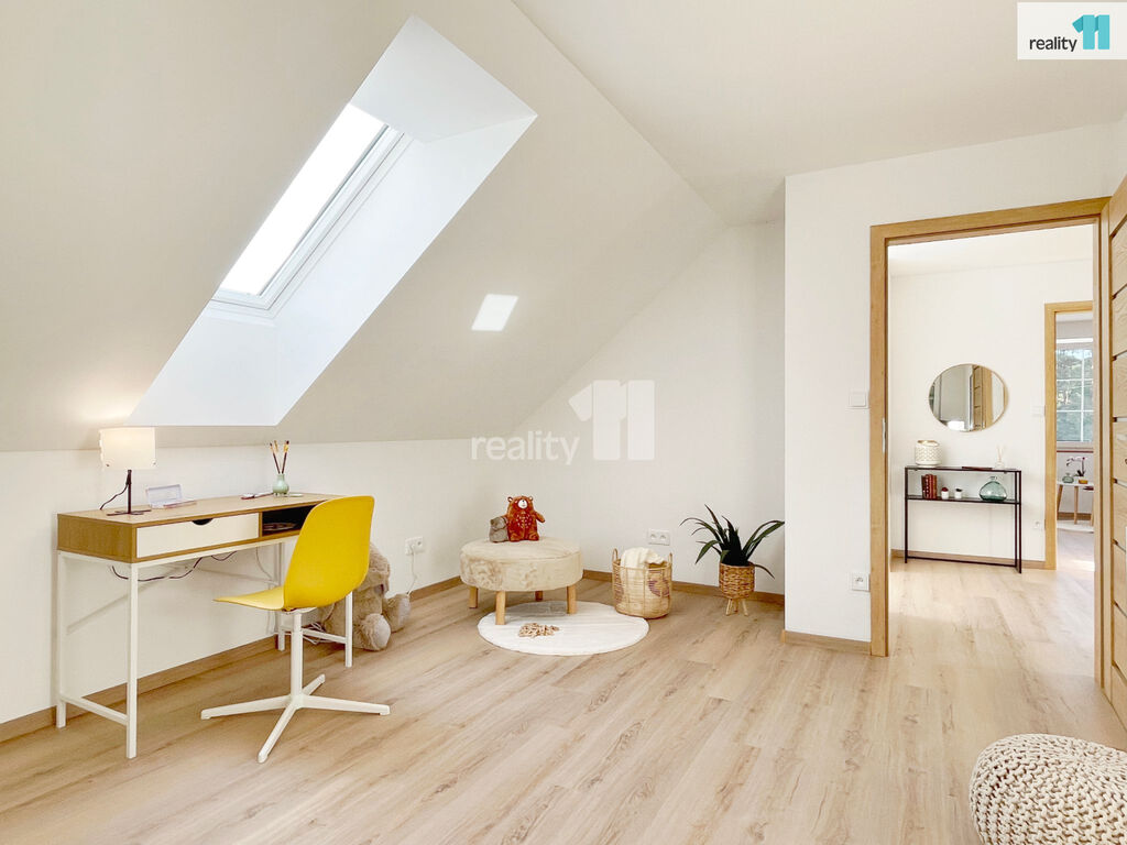V domě jsou čtyři neprůchozí pokoje, jejichž dispozice se pohodlně přizpůsobí jak dětským snům o vlastním útočišti, tak pracovním či relaxačním potřebám rodičů. Ve dvou koupelnách najdete vanu i sprchový kout – všichni členové rodiny mají svůj komfort zaručen.