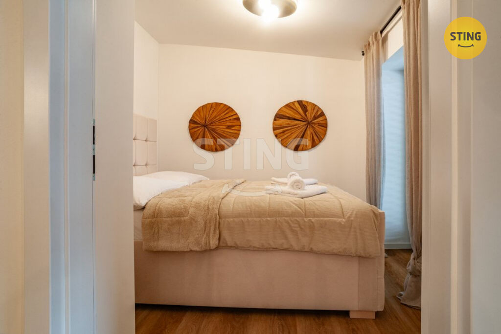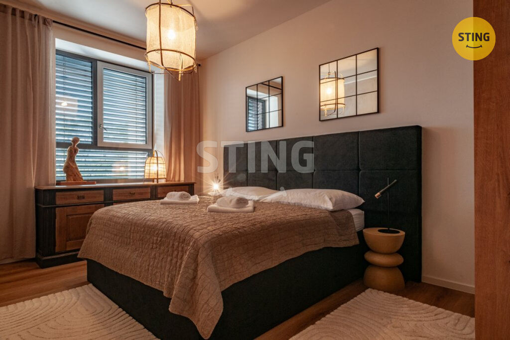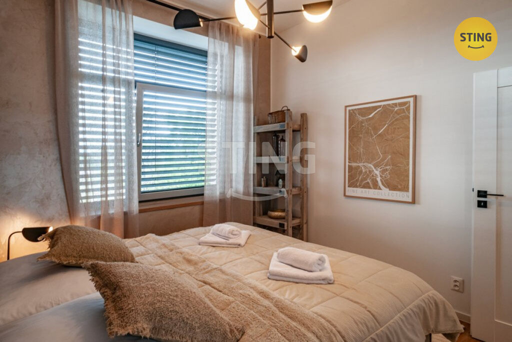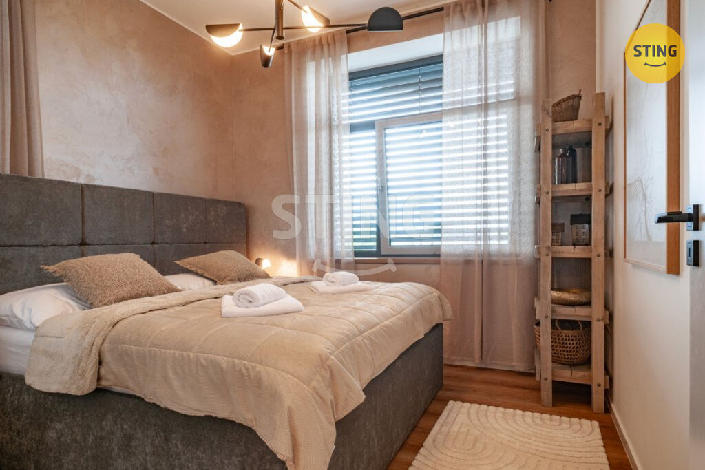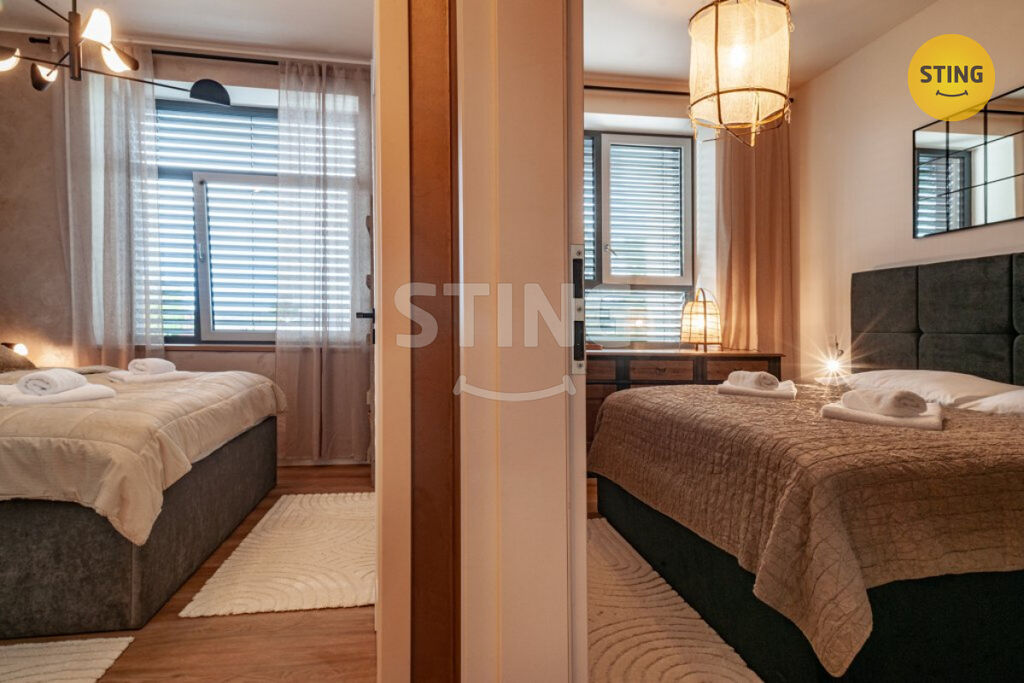 Tři samostatné ložnice nabízí dostatek soukromí a klidu, vhodné pro rodinu, home office i hosty. V celém bytě byly použity prémiové materiály: