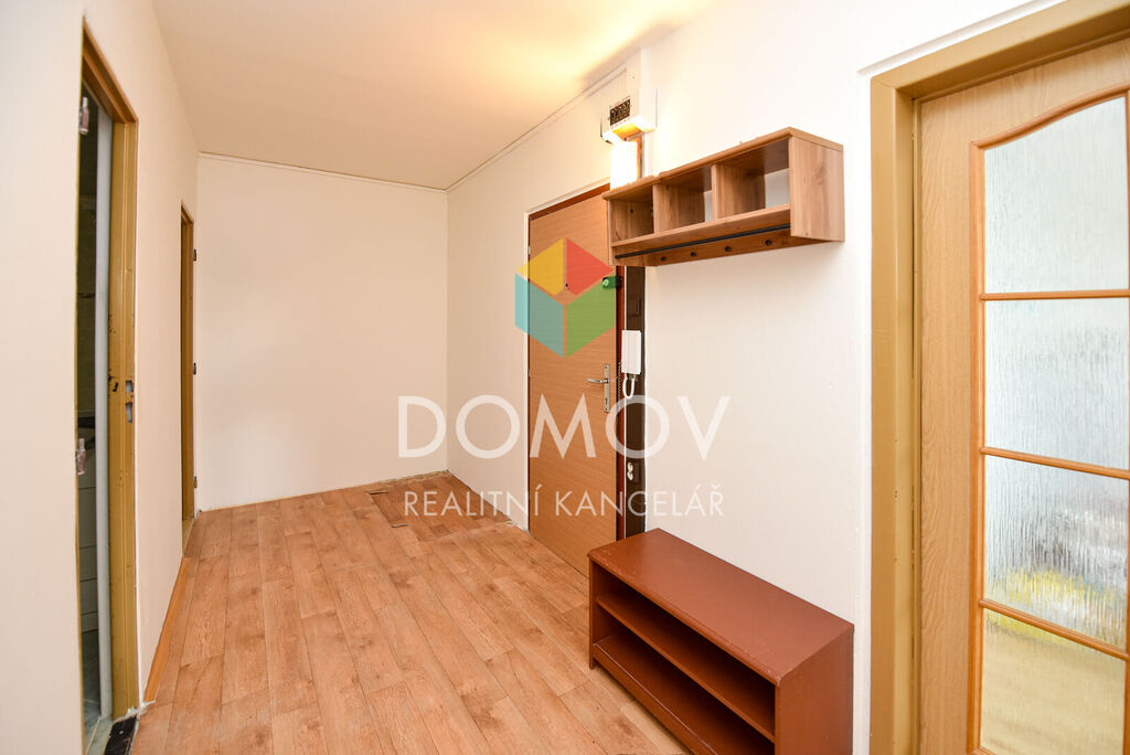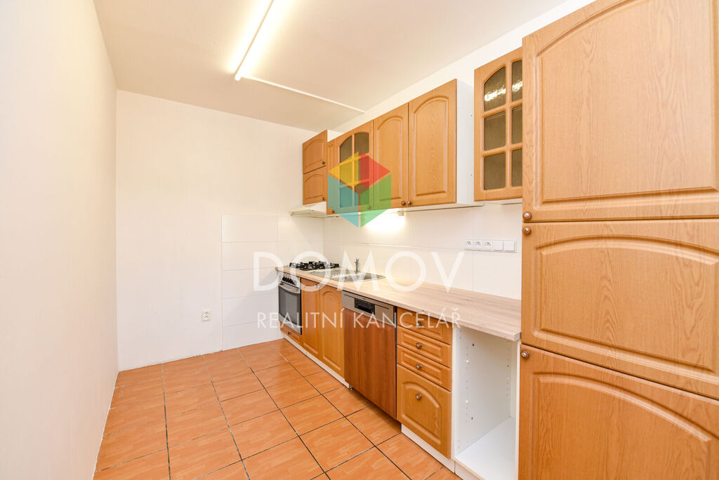 Jeho dispozice se skládá ze vstupní chodby, koupelny s vanou, samostatné toalety, dvou ložnic a obývacího pokoje s kuchyňským koutem, Kuchyňský kout je částečně zrekonstruován a je vybaven plynovým sporákem s el. troubou, digestoří a myčkou. Velkým bonusem je zasklená lodžie na kterou se dostanete z jedné z ložnic.