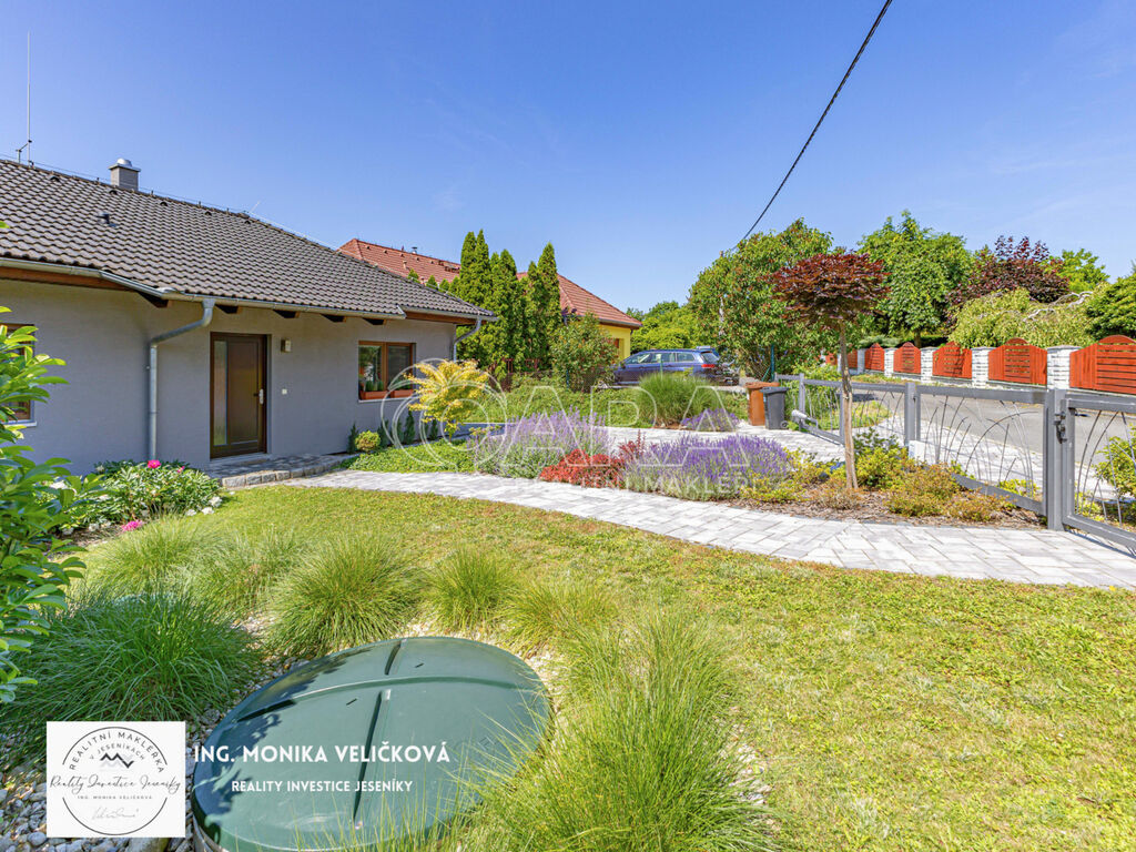 Před domem je vlastní parkovací stání pro více vozidel. Za domem se rozprostírá pečlivě udržovaná zahrada s okrasným jezírkem, doplněná o zahradní domek s krytou pergolou, ideální pro letní grilování nebo relaxaci v soukromí.
