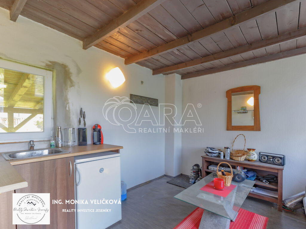 zahradní domek s krytou pergolou