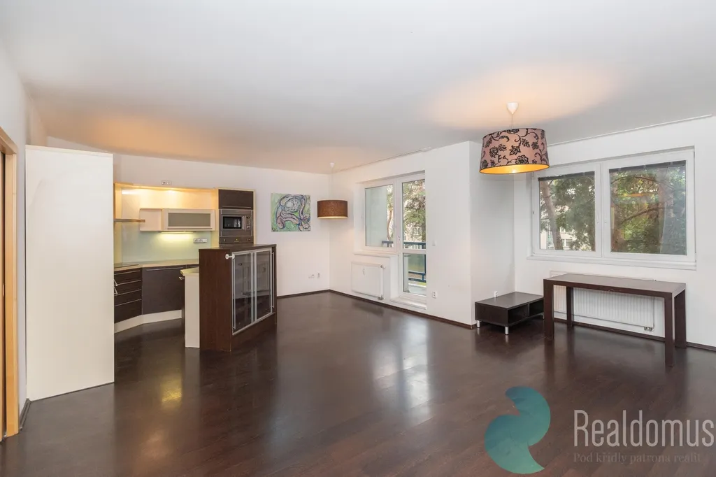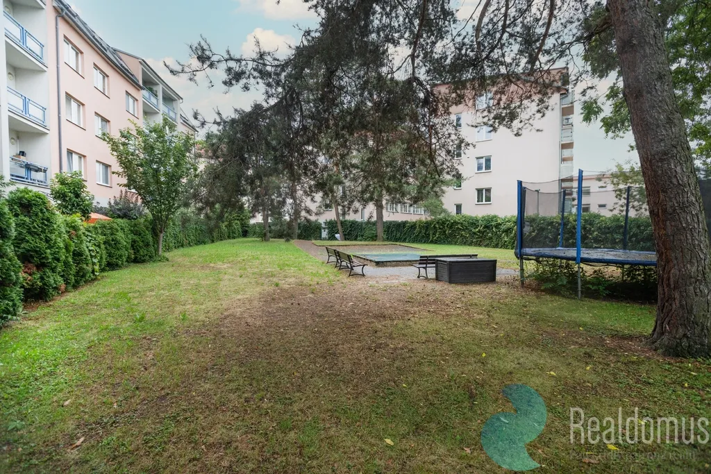 Byt disponuje chodbou v které je umístěna vestavná skříň s pračkou. Samostatná ložnice s velkou šatnou a balkonem. Obývací pokoj s plně vybavenou kuchyňskou linkou na míru, i s vinotékou. Z prostorné lodžie je krásný výhled do společné uzavřené zahrady, kde můžete trávit chvíle nejen u grilování, ale i sklenky vína. Z ložnice je možné vyjít na balkon, který nabízí také výhled do zahrady. Koupelna je s rohovou vanou. Samostatné WC. K bytu náleží parkovací místo v garáži, která je ovládaná automatickými vraty. Velmi prostorný sklep se velice hodí jako úložný prostor. Je možné i přebudovat na 3+kk.