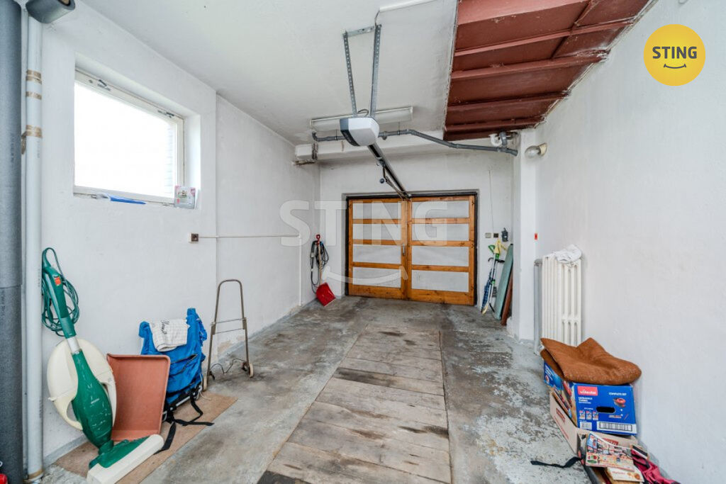 Suterén: Tři velké místnosti (dílna/sklad), dvě menší místnosti, kotelna, toaleta a přímý vstup na zahradu.